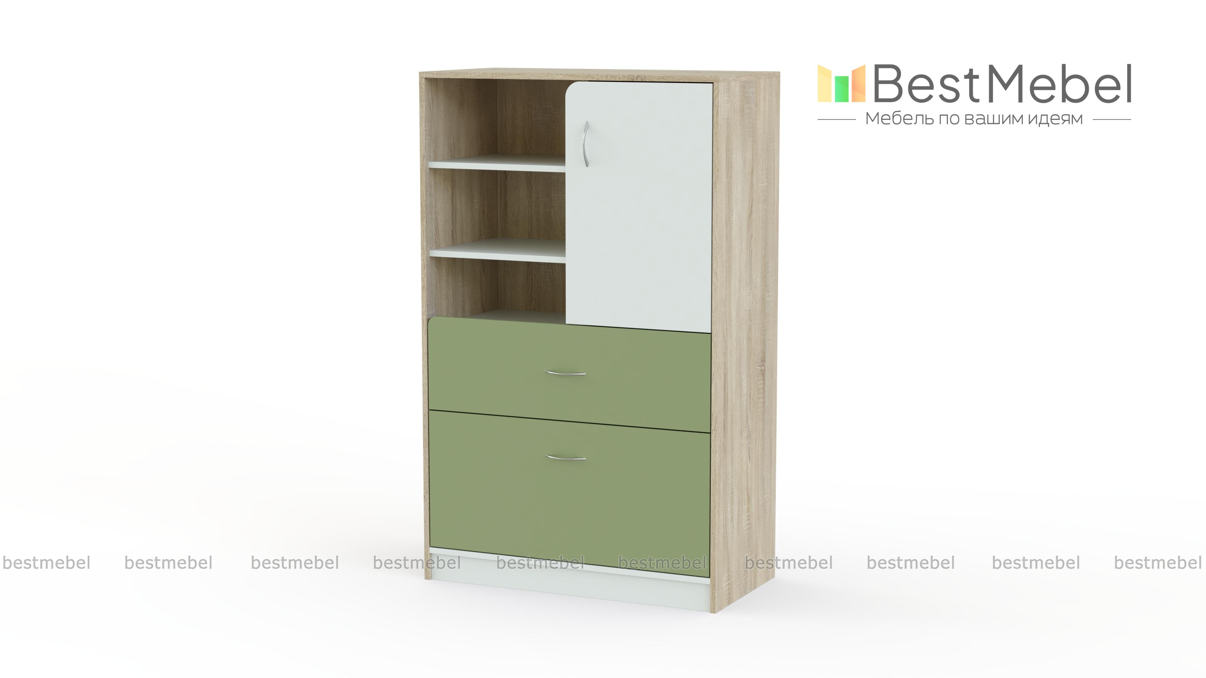 Комод IQ-07 BMS – высокая модель, объединившая функции классического комода и книжного шкафа. Прекрасный выбор для интерьера детской, комод выполнен в сочетании нейтральных оттенков с яркими вставками и оборудован всем необходимым для хранения игрушек, книг, разнообразных мелочей. В нижней части модели располагаются два выдвижных ящика разной глубины, в верхней – распашное отделение и открытые полки. Износостойкие и простые в уходе, поверхности надолго сохранят эстетичный вид. Купить комод IQ-07 BMS приглашаем в наш интернет-магазин.