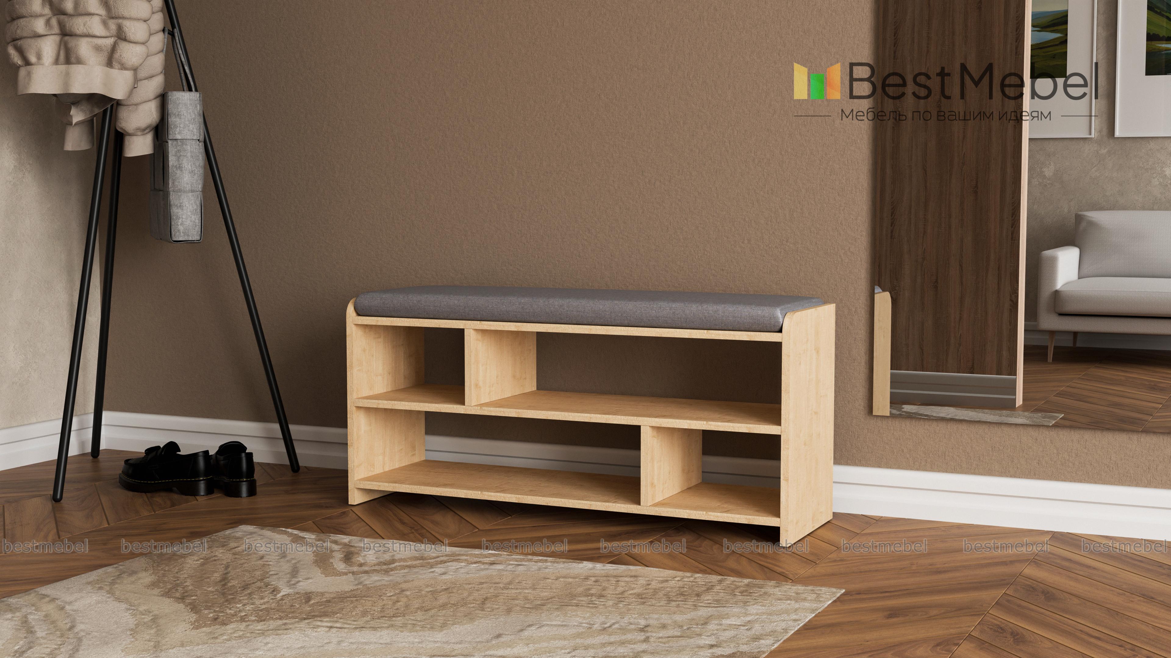 Обувница Йорк BMS – это практичная скамья для современной прихожей. Многофункциональная модель оборудована широким сиденьем в мягкой обивке, которое сделает процесс обувания максимально комфортным, и открытыми полками для хранения повседневной обуви и уходовых средств. Выполненная в нейтральных древесных тонах, обувница безопасно скруглена по углам, обивка из износостойкого материала надолго сохранит эстетичный вид. Купить обувницу Йорк BMS вы сможете в нашем интернет-магазине, подобрав оптимальное цветовое решение.