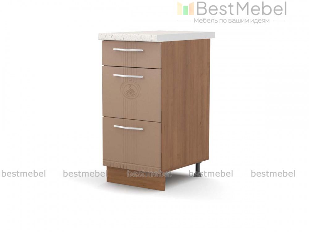 Кухонная тумба с 3 ящиками Паллада BMS отличается компактными габаритами и высокой функциональностью. Тумба гармонично впишется в нижний ряд модульного комплекта для кухни и будет незаменима для хранения мелочей и более крупных предметов. Модель оборудована тремя выдвижными ящиками разной высоты, оснащенных плавной системой открывания. Фасады яркого оттенка декорированы фрезерованным рисунком и оригинальными ручками. Купить кухонную тумбу с 3 ящиками Паллада BMS приглашаем в наш интернет-магазин.