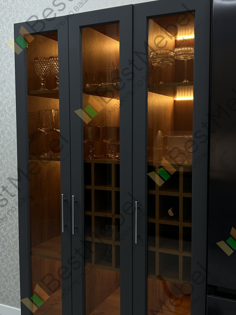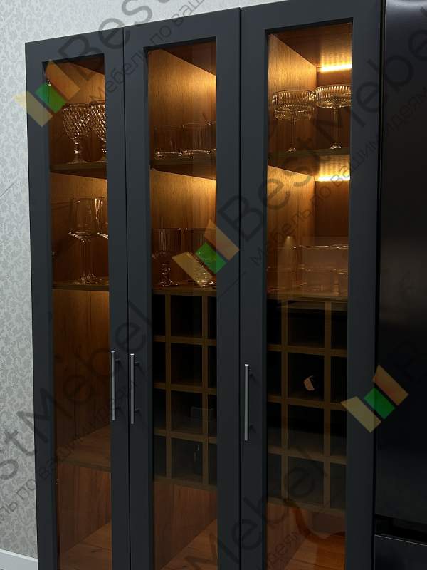 Шкаф Буффало 1 BMS представляет собой элегантную витрину с корпусом в крафтовых древесных тонах и черным рамочным фасадом. Трехдверная модель с просторными прямыми полками и квадратными ячейками предназначена для размещения винной коллекции, обеспечивая содержимому прекрасный обзор. Встроенная подсветка помогает эффектно представить бутылки с винами и придает помещению уютный и атмосферный вид. Купить шкаф Буффало 1 BMS приглашаем в наш интернет-магазин.