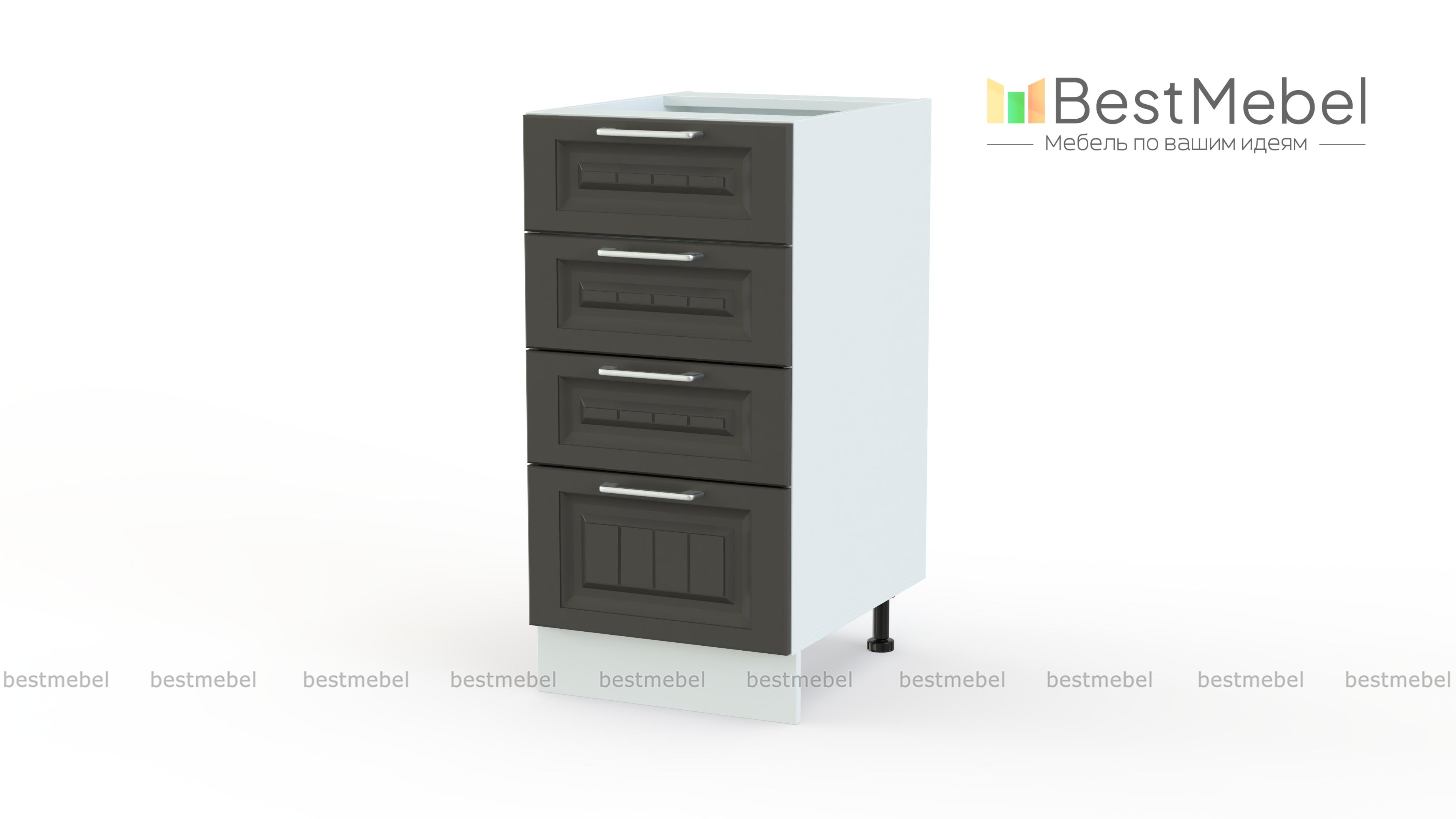 Шкаф нижний с 4-мя ящиками Европа BMS – незаменимая часть функционального современного комплекта для кухни. Узкий шкафчик занимает минимум места, но при этом на редкость вместителен, что позволит использовать модуль даже в гарнитурах для малогабаритных помещений. Шкаф оборудован четырьмя выдвижными ящиками, из которых один чуть больше по глубине, и отлично подходит для хранения кухонных мелочей. Купить шкаф нижний с 4-мя ящиками Европа BMS по хорошей цене приглашаем в наш интернет-магазин.