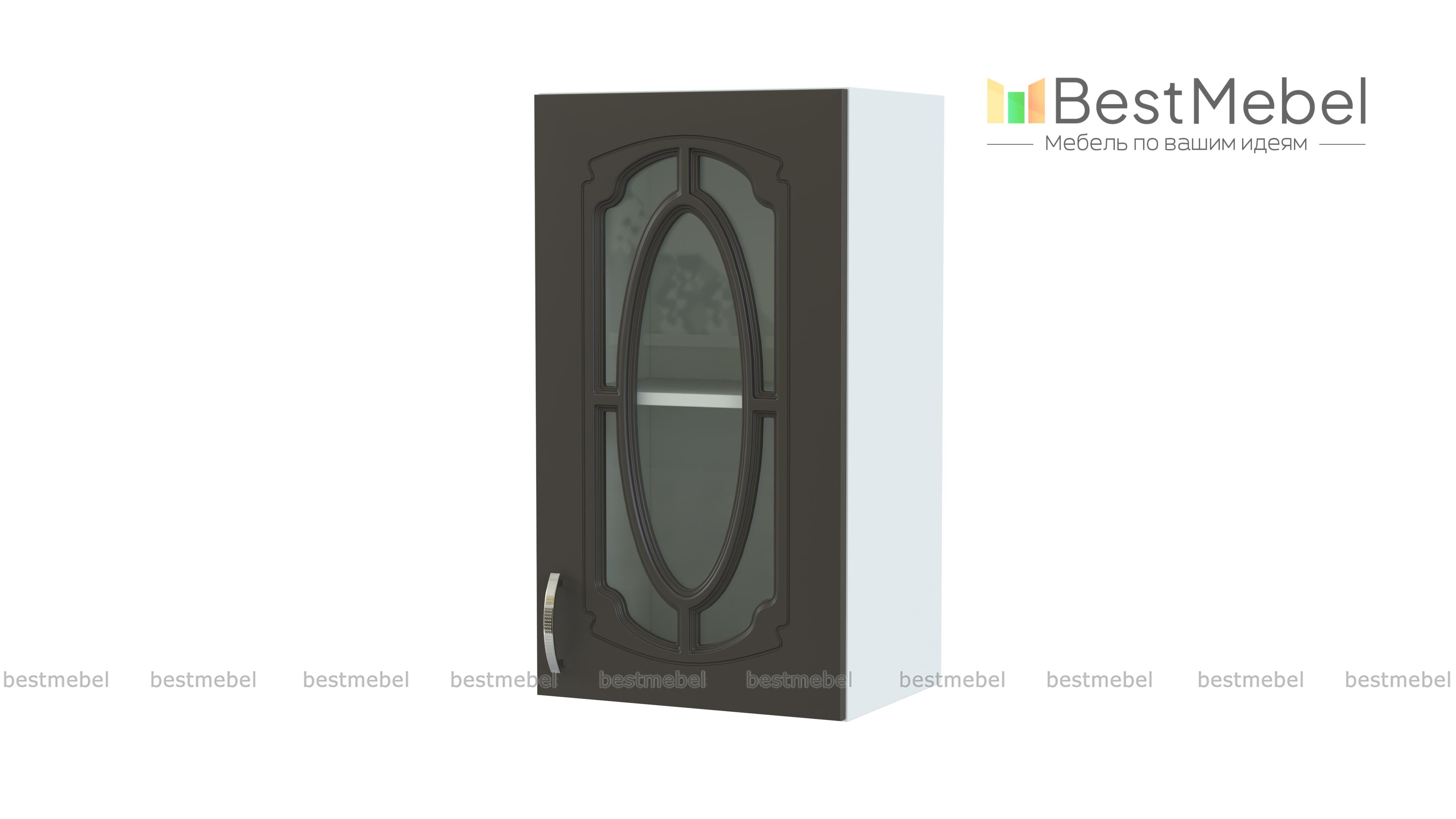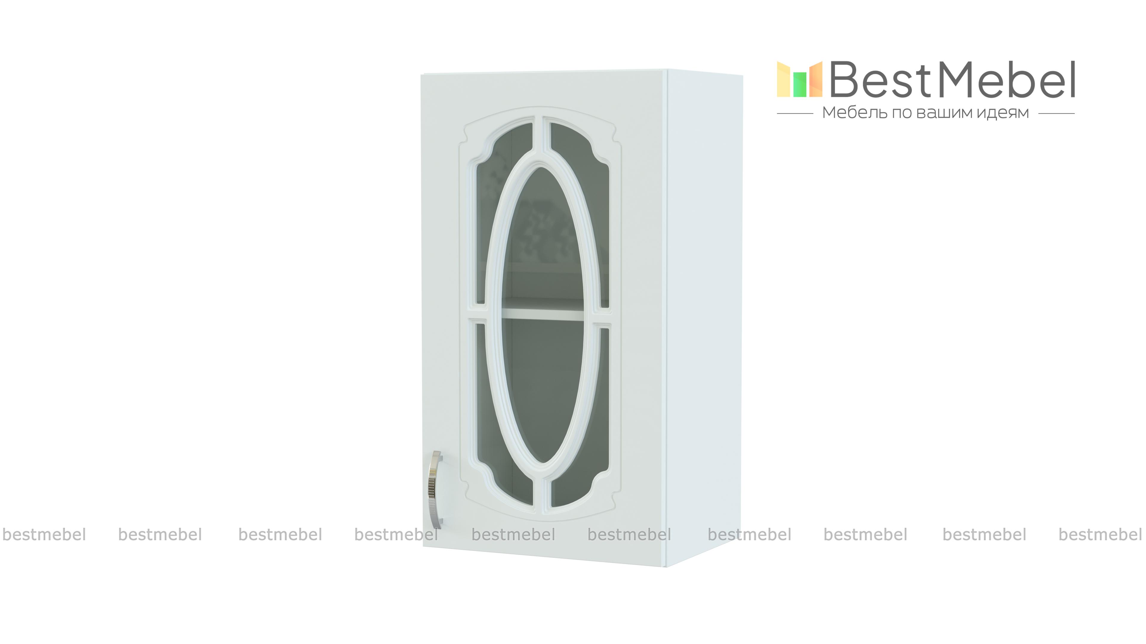 Шкаф верхний с 1-ой остекленной дверцей Настя BMS гармонично дополнит ряд навесных элементов модульного комплекта. Застекленный фасад с фрезеровкой и изящным декором станет настоящим украшением домашнего классического интерьера. Компактный, но вместительный, шкафчик оптимален для хранения посуды, сервизов, хрупких предметов. Купить шкаф верхний с 1-ой остекленной дверцей Настя BMS вы сможете по доступной цене в нашем интернет-магазине с подбором необходимых параметров.