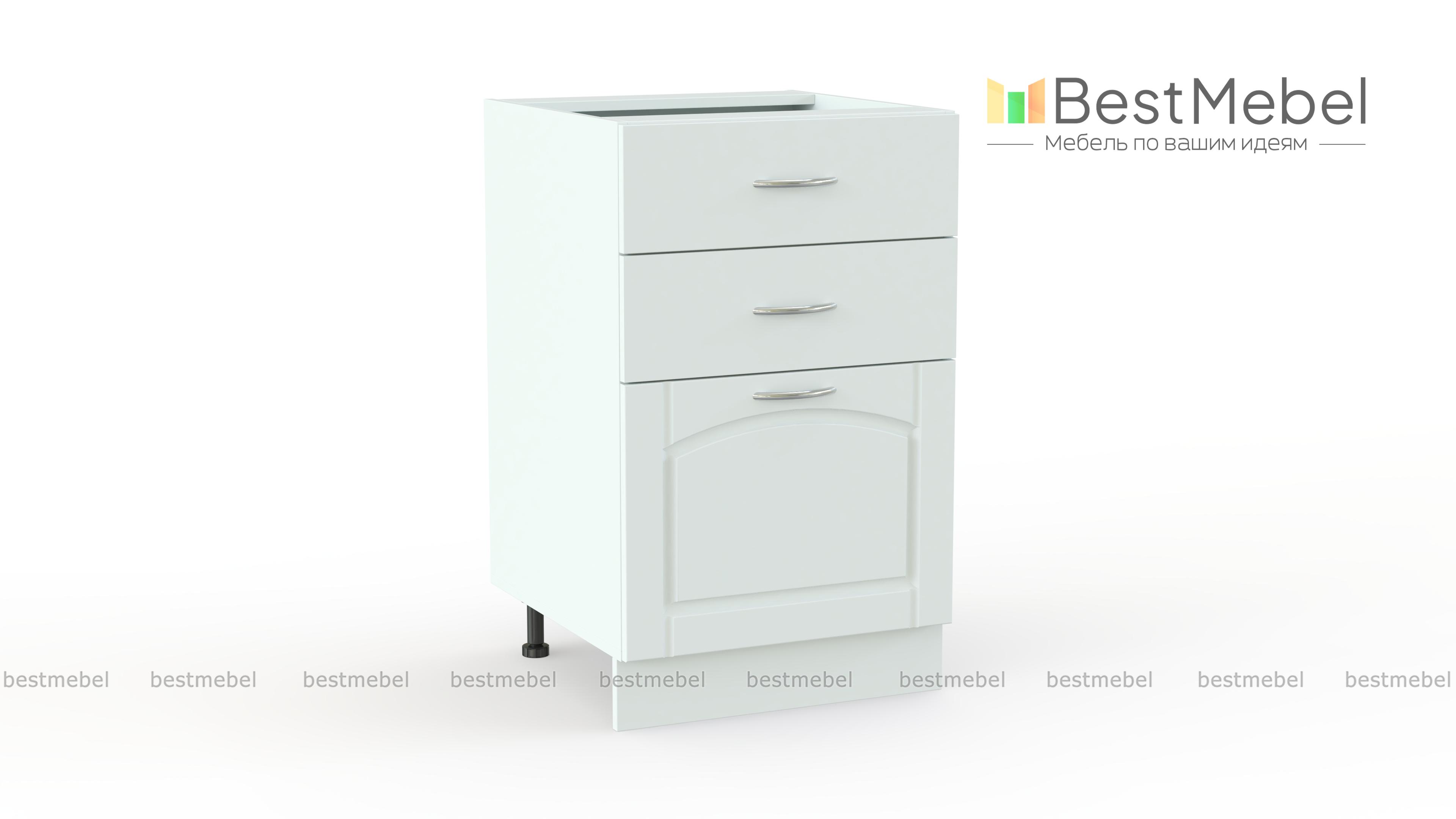 Стол с 3 ящиками Трапеза BMS дополнит модульный гарнитур в классическом стиле удобной системой хранения. Напольная тумба оборудована тремя выдвижными ящиками разной высоты и позволит разместить как столовые приборы и прочие мелкие вещи, так и более габаритные предметы. Элегантные фасады в классическом стиле декорированы фрезеровкой и ручками под серебро, регулируемые опоры закрыты цоколем в тон фасадам. Купить стол с 3 ящиками Трапеза BMS вы сможете по отличной цене в нашем интернет-магазине.