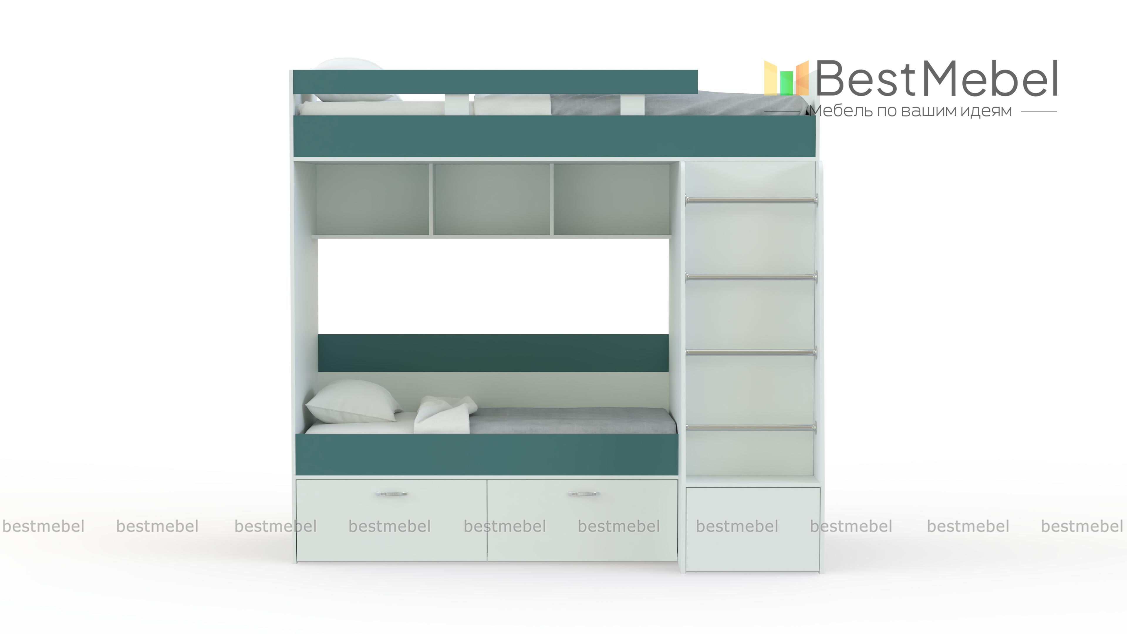 Двухъярусная кровать Белла 6 со шкафом BMS – недорогой современный комплект, который подарит малышам полноценный здоровый сон. Спальное место второго яруса ограждено защитным бортиком, вниз ведет удобная устойчивая лестница. Для хранения предметов гардероба предусмотрен встроенный шкаф, а игрушки и книги смогут расположиться на открытых полках между ярусами и за спинкой кровати. Купить двухъярусную кровать Белла 6 со шкафом BMS в подходящей расцветке вы сможете в нашем интернет-магазине.