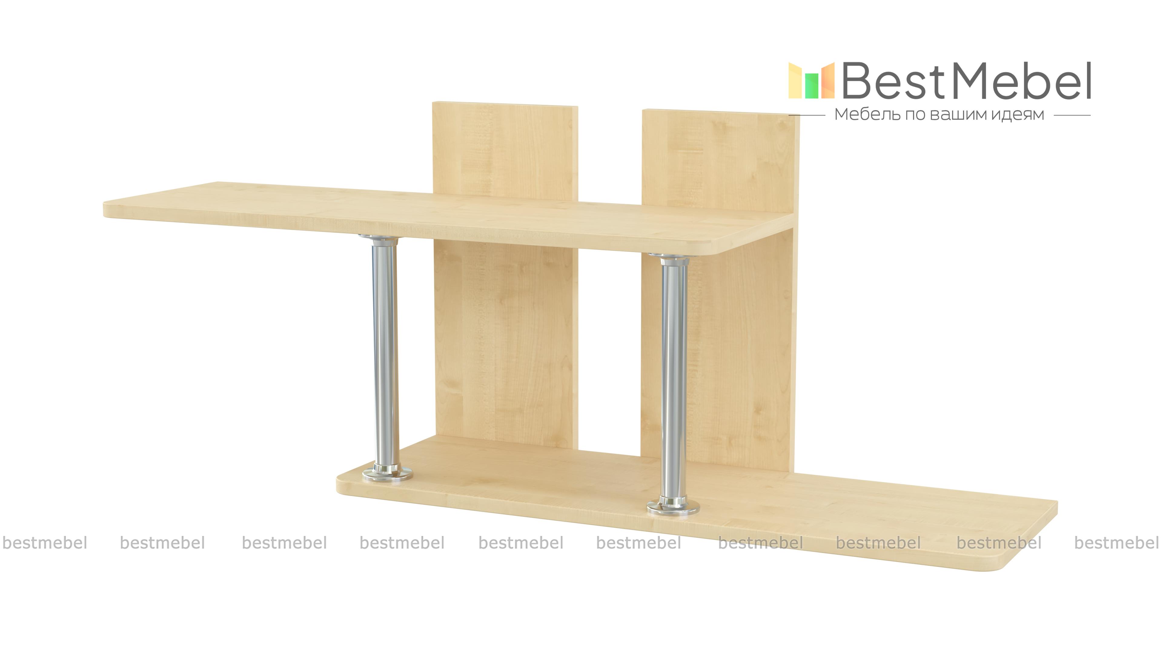 Полка навесная ПН-1 BMS изящна и проста в исполнении. Мебель офиса – лицо всей компании. Поэтому подбирайте достойные, привлекательные изделия. К таким качествам подходит представленная полка. Её лёгкая конструкция из двух полок, дополнена великолепными стойками. Благодаря им, полки, как будто, парят в воздухе. Некоторые книги или элементы декора, которыми гордится начальник, могут занять эти прекрасные ниши. На сайте предложено несколько оттенков для оформления изделия. Купить полку навесную ПН-1 BMS можете в интернет-магазине Бэст Мебель Шоп по низкой цене.