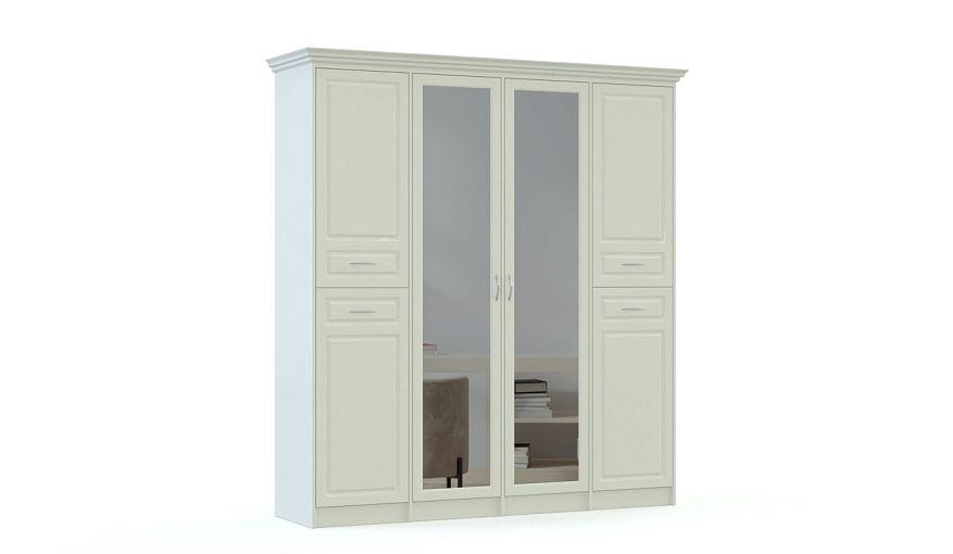 Распашной шкаф Рита 7 BMS поможет вам создать элегантный классический интерьер и компактно разместить большое количество вещей. Модель с карнизом и традиционной рамочной фрезеровкой на фасаде выполнена в светлом оттенке и дополнена зеркалами, которые визуально облегчают конструкцию. Продуманное внутреннее наполнение станет залогом отличной вместительности, а износостойкие поверхности просты в уходе и долговечны. Купить распашной шкаф Рита 7 BMS с возможностью выбора цвета и размеров приглашаем в наш интернет-магазин.