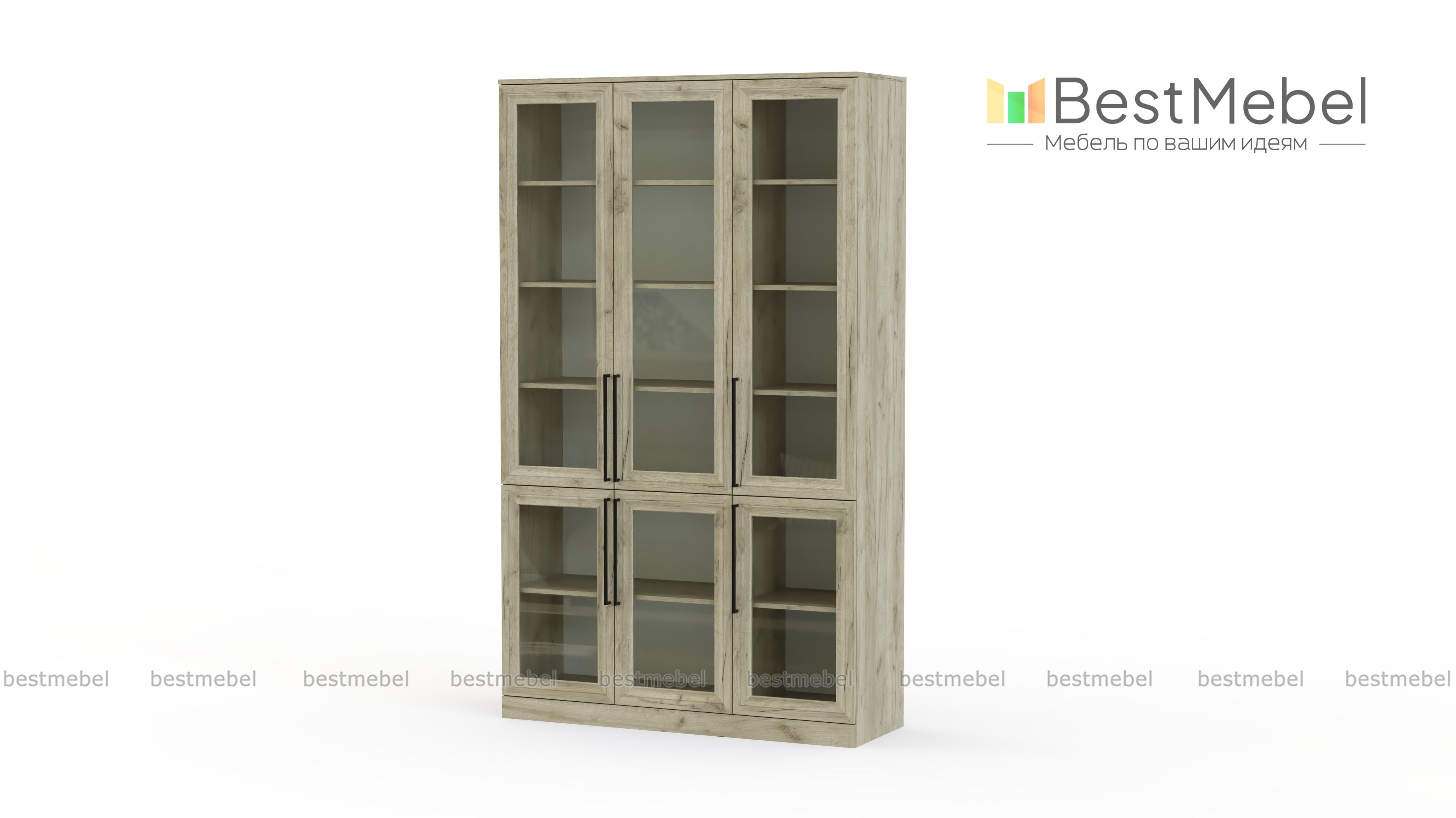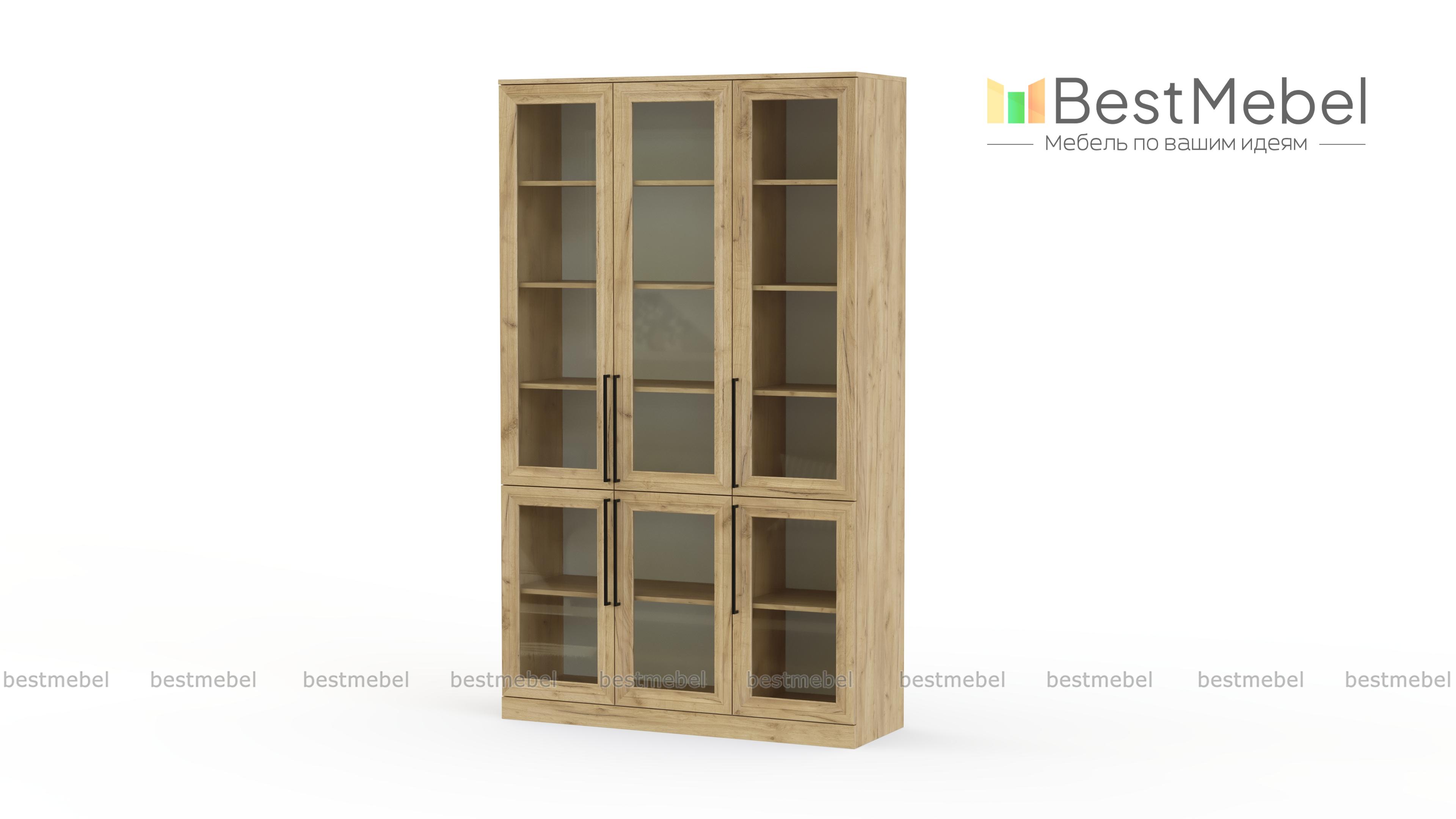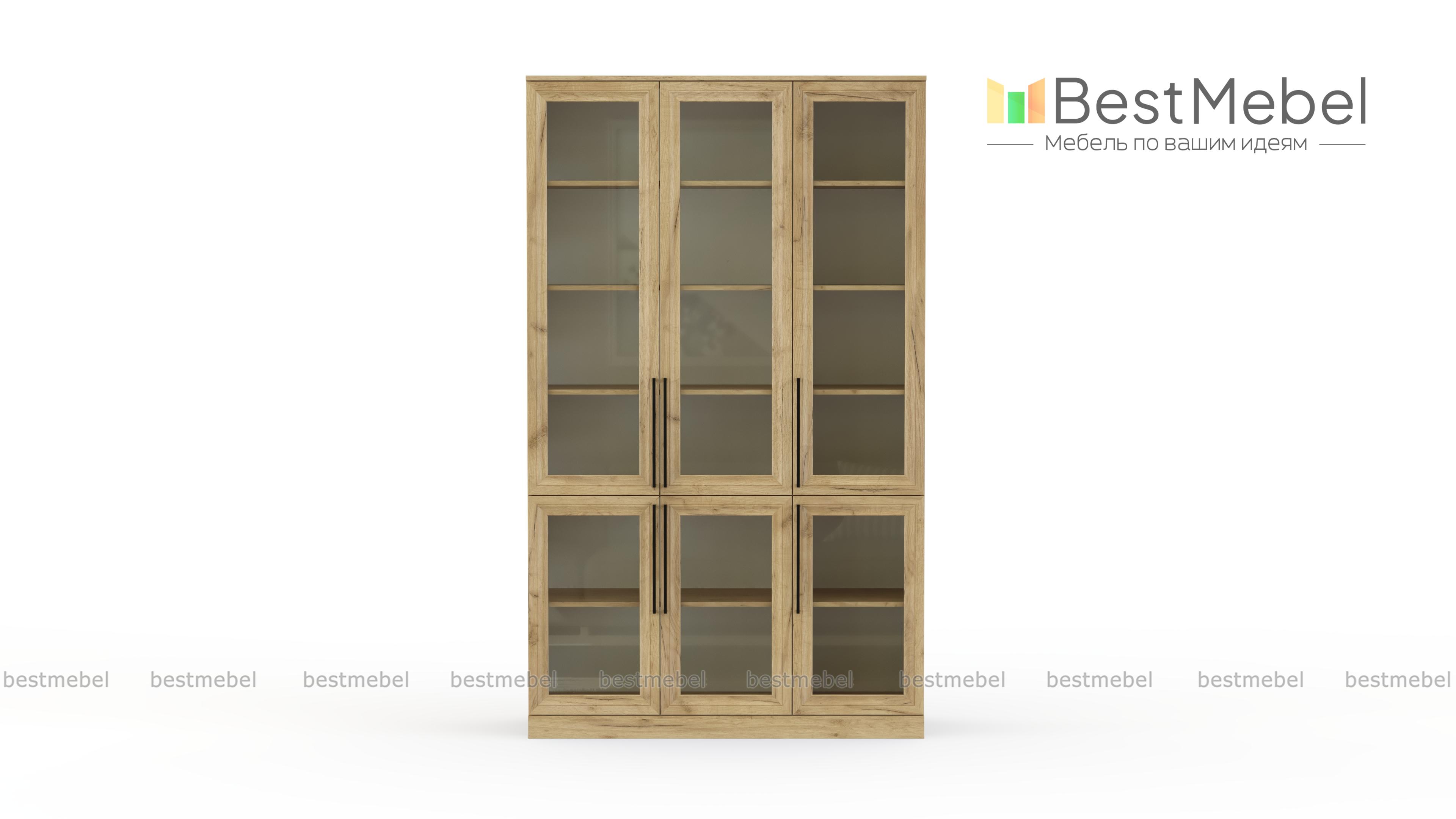 Шкаф книжный Рим 2 BMS оборудован полками и стеклянными дверцами для бережного и эстетичного хранения. Три верхних створки и три нижних оформлены классическими рамками, длинные ручки-скобы стильно выглядят и удобны для открывания. Широкие полки в оттенке светлого дерева предназначены специально для книг разного формата, учебных пособий и предметов из личной коллекции. Купить шкаф книжный Рим 2 BMS приглашаем в наш интернет-магазин, подобрав размеры, цвет и фурнитуру.