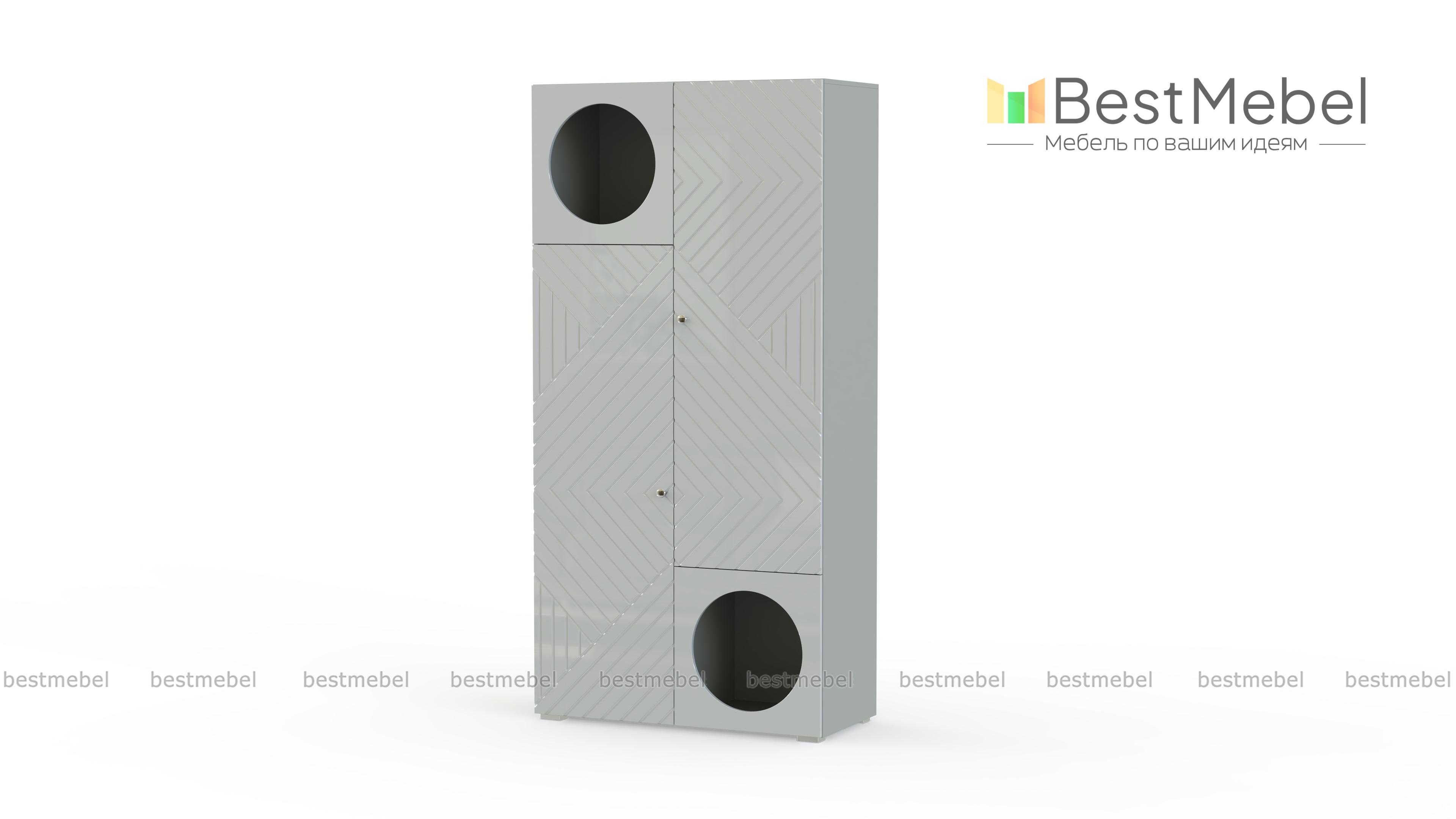 Шкаф распашной Авелин 20 BMS имеет не только глухие дверцы, но и практичные круглые отверстия, в которых предметы находятся на виду. Внутреннее пространство шкафа разделено вертикальной перегородкой и полками, корпус и фасад выполнены в теплой нейтральной гамме. Фрезерованные линии на фасаде шкафа складываются в стильный геометрический узор. Купить шкаф распашной Авелин 20 BMS приглашаем в наш интернет-магазин с выбором размеров, цвета и компоновки.