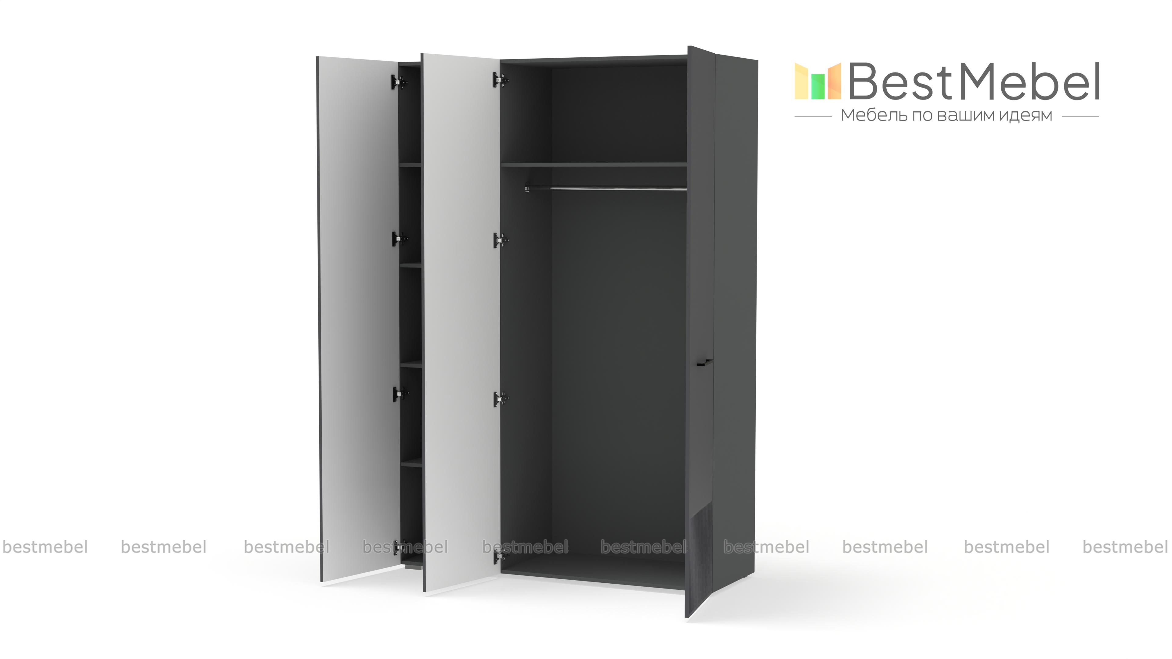 Шкаф распашной Декарт 3 BMS сохранит порядок в спальне, детской комнате или входной зоне. За двумя дверцами справа скрыта штанга для одежды, а однодверное отделение слева оборудовано полками. Элегантный фасад с рельефом и оригинальными ручками-скобами хорошо сочетается с разными интерьерами, помогая создать гармоничную обстановку. Купить шкаф распашной Декарт 3 BMS вы сможете в нашем интернет-магазине, самостоятельно подобрав размеры, цвет и наполнение.