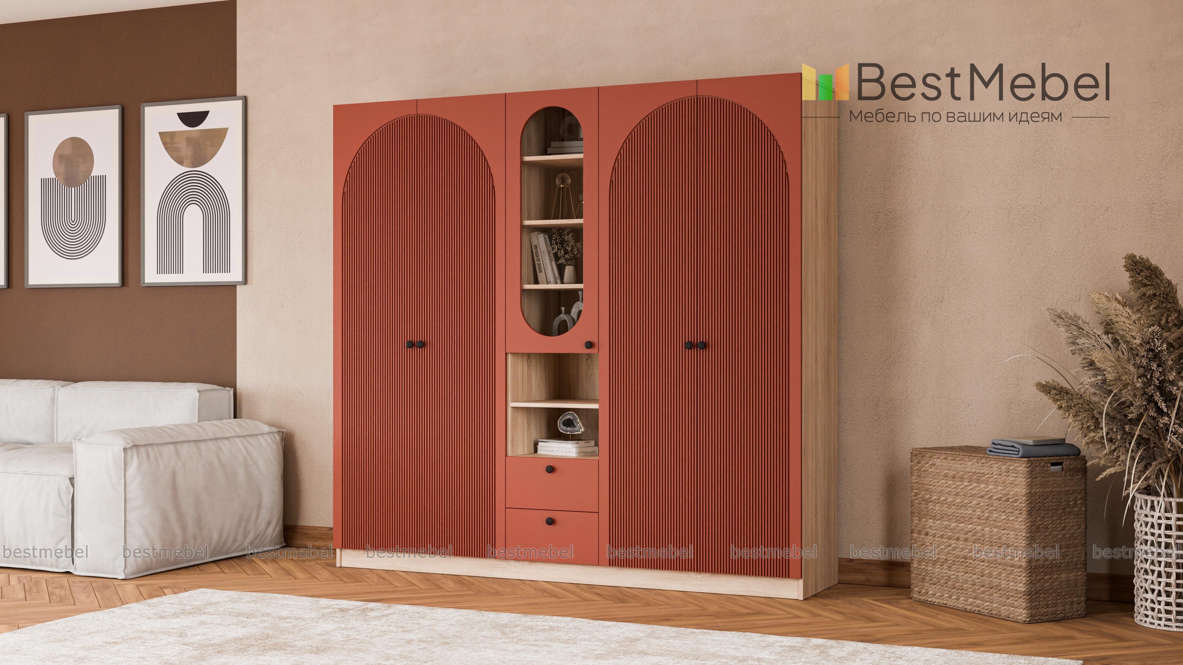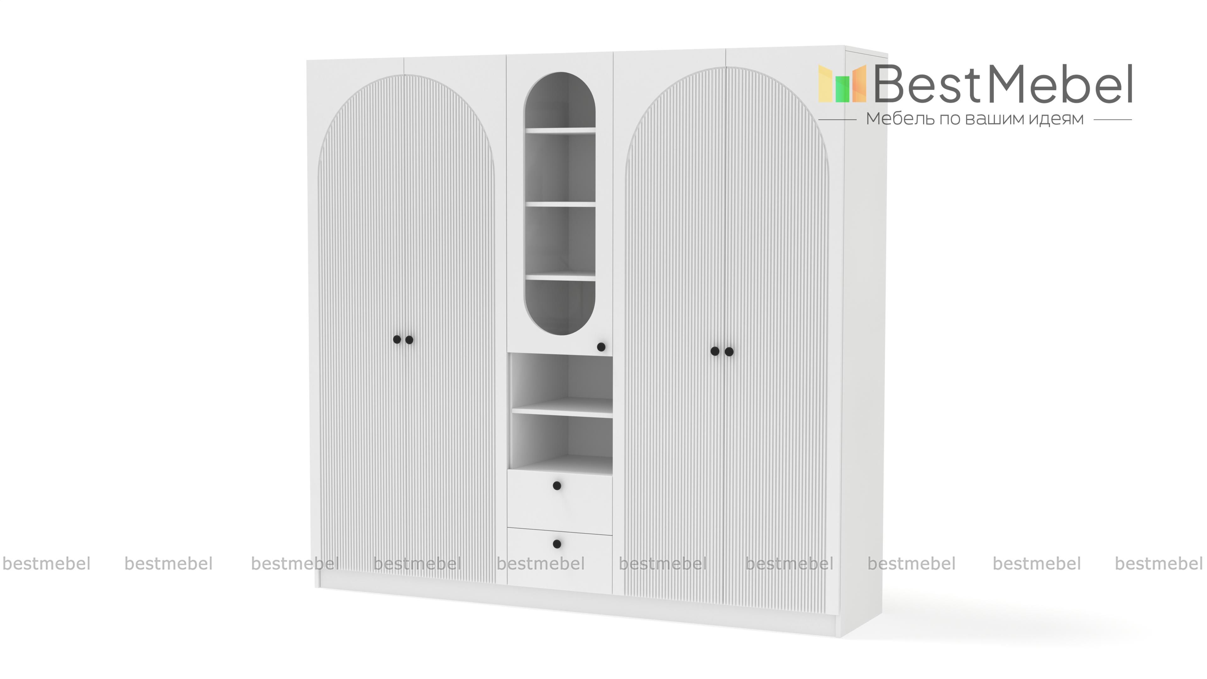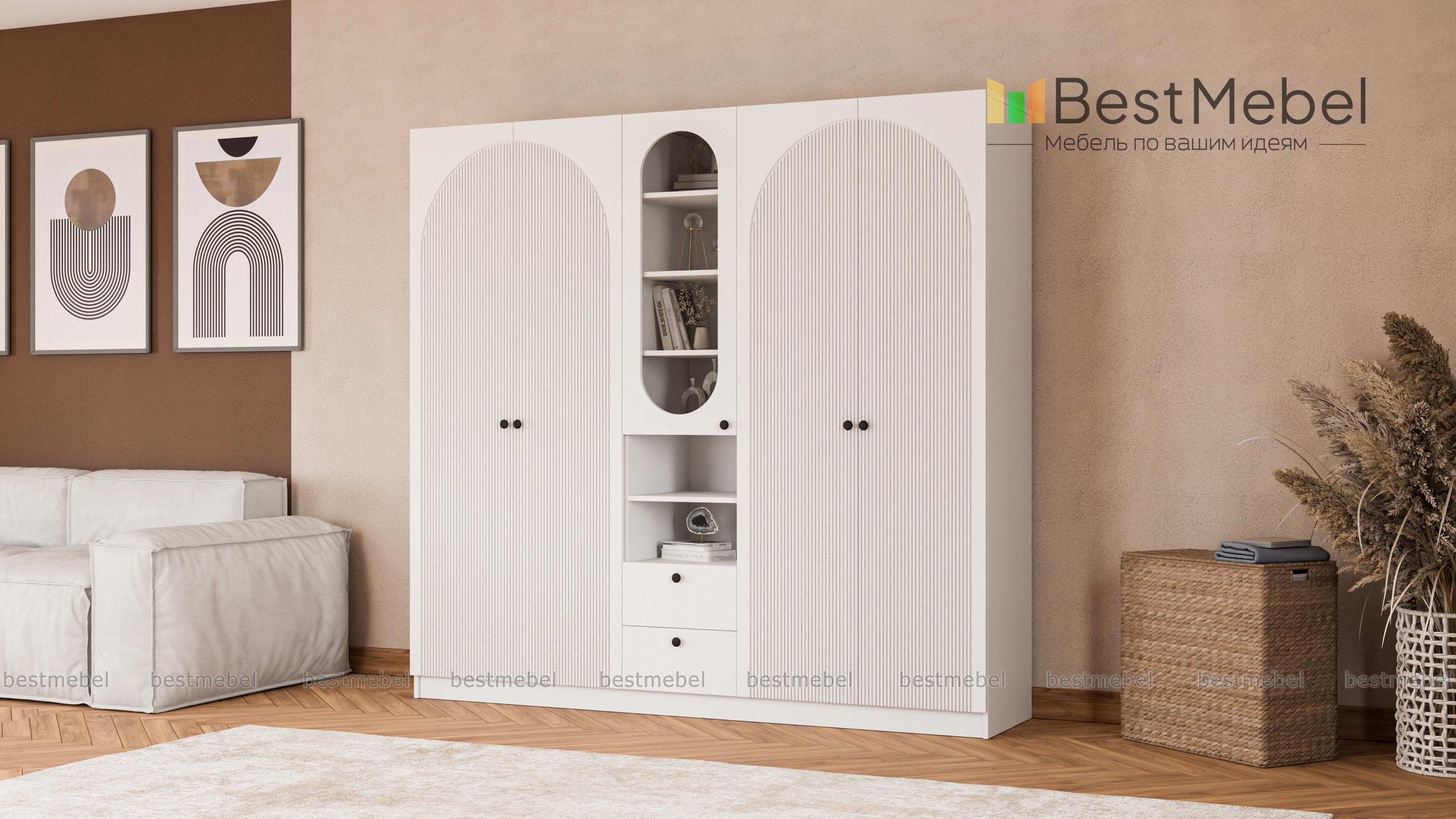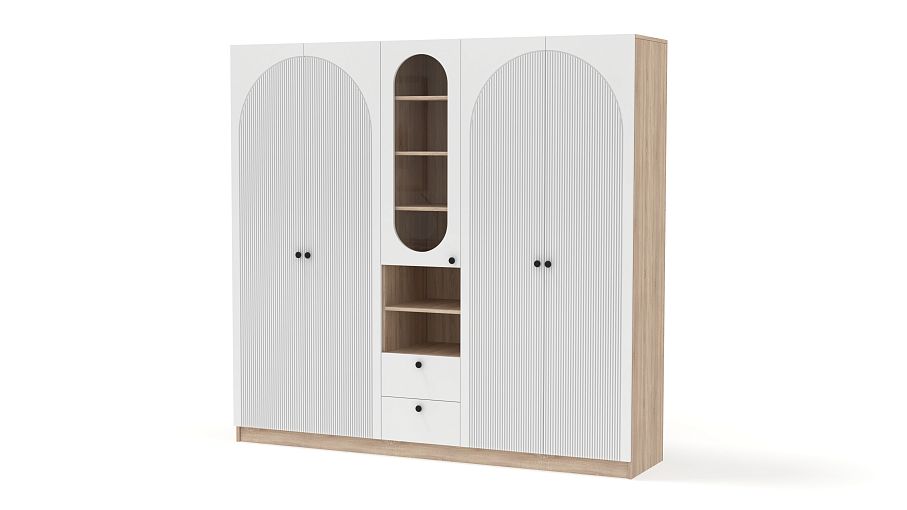 Шкаф распашной Вивьен 25 BMS — это два платяных отделения, витрина под книги и посуду, открытые полки и ящики для мелочей. Вместительная комбинированная модель сделает удобным хранение в гостиной, спальне или детской комнате. Корпус из ламинированной плиты красиво сочетается с нейтральным фасадом, фигурный вырез со стеклом повторяет форму декоративного рисунка на дверцах. Купить шкаф распашной Вивьен 25 BMS приглашаем в наш интернет-магазин, подобрав фурнитуру и цвет по каталогу.
