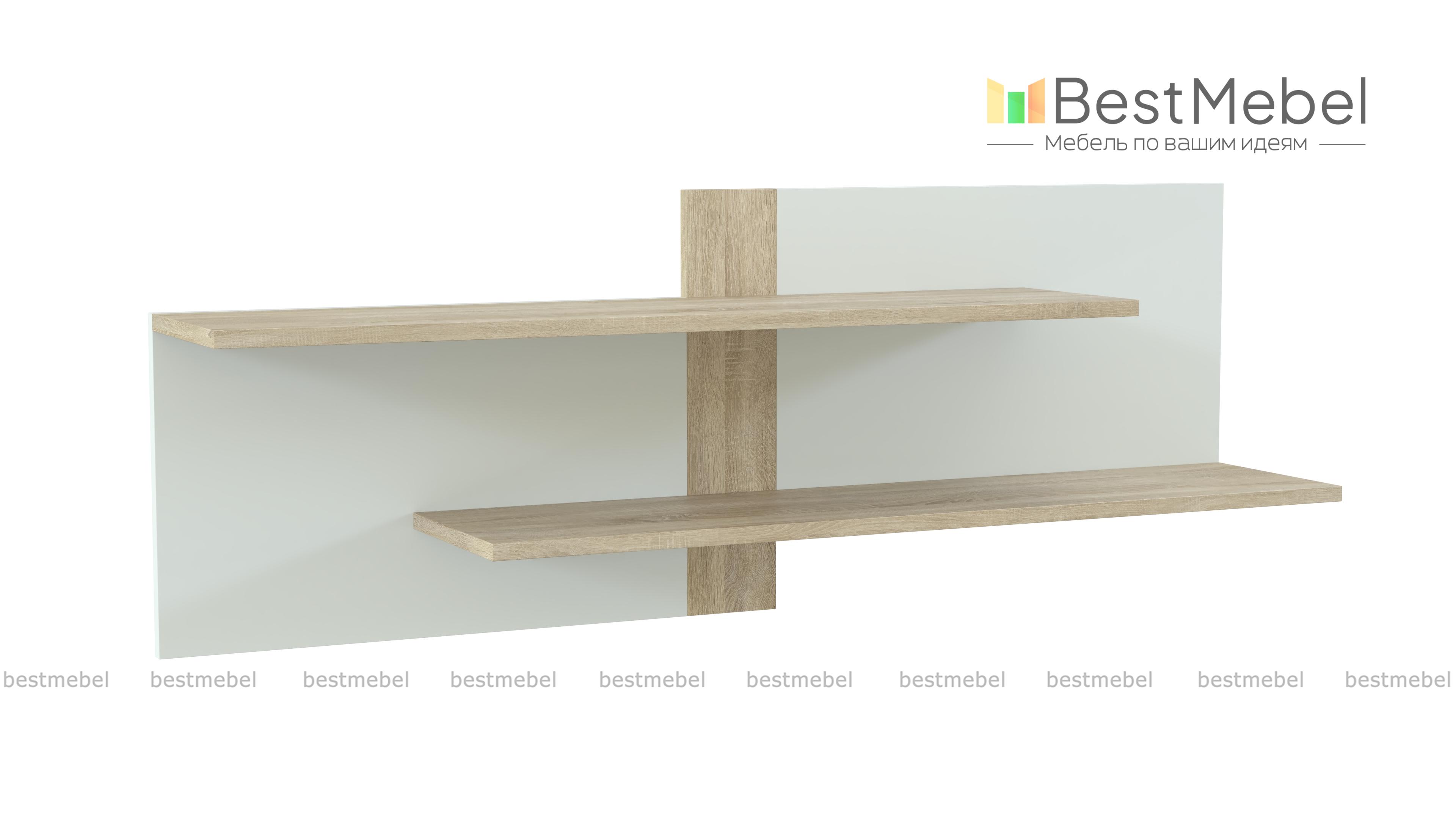 Полка Лари 3 BMS – это геометричный современный дизайн и актуальное цветовое решение в нейтральных белых тонах с древесными вставками. Простая и оригинальная модель с двумя широкими, полностью открытыми полками на разных уровнях, позволит хранить под рукой книги, учебные материалы и канцелярские принадлежности. Навесная конструкция сэкономит полезную площадь небольшой комнаты. Купить полку Лари 3 BMS для интерьера детской или молодежной комнаты приглашаем в наш интернет-магазин.