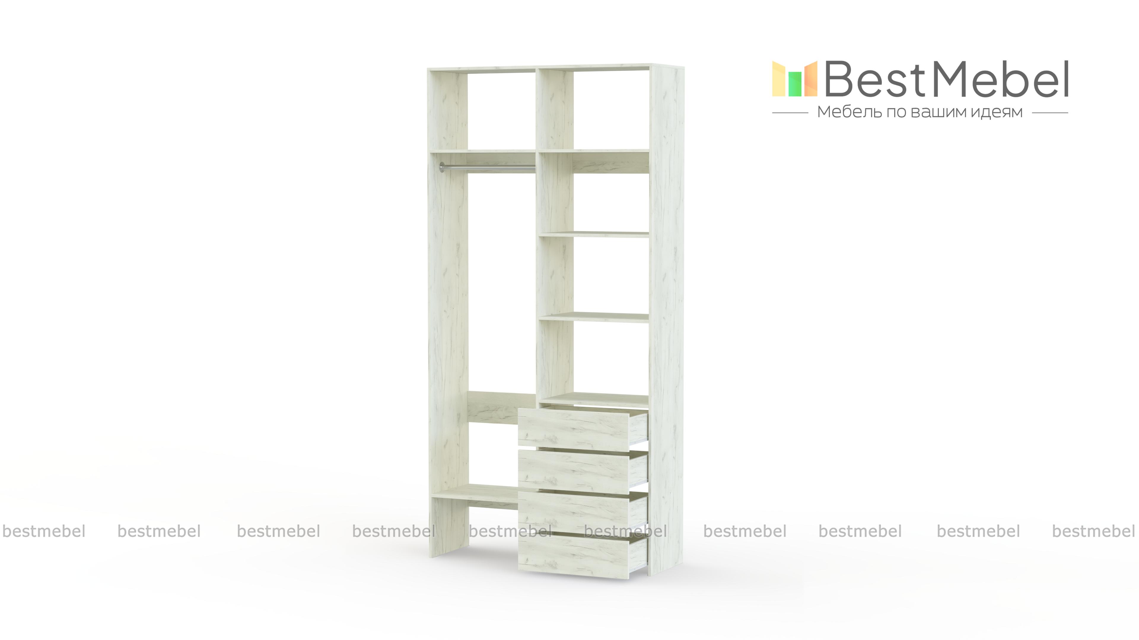 Стеллаж для одежды Мирта 2 BMS поможет вам организовать хранение дома или в торговом зале. Открытая конструкция со штангой, полками и рядом из четырех выдвижных ящиков подходит для размещения одежды на вешалках, коробок с обувью и мелкого трикотажа. Материал изготовления – устойчивая к износу и долговечная ламинированная плита в базовом оттенке. Купить стеллаж для одежды Мирта 2 BMS приглашаем в наш интернет-магазин, подобрав необходимые размеры и цвет по каталогу.