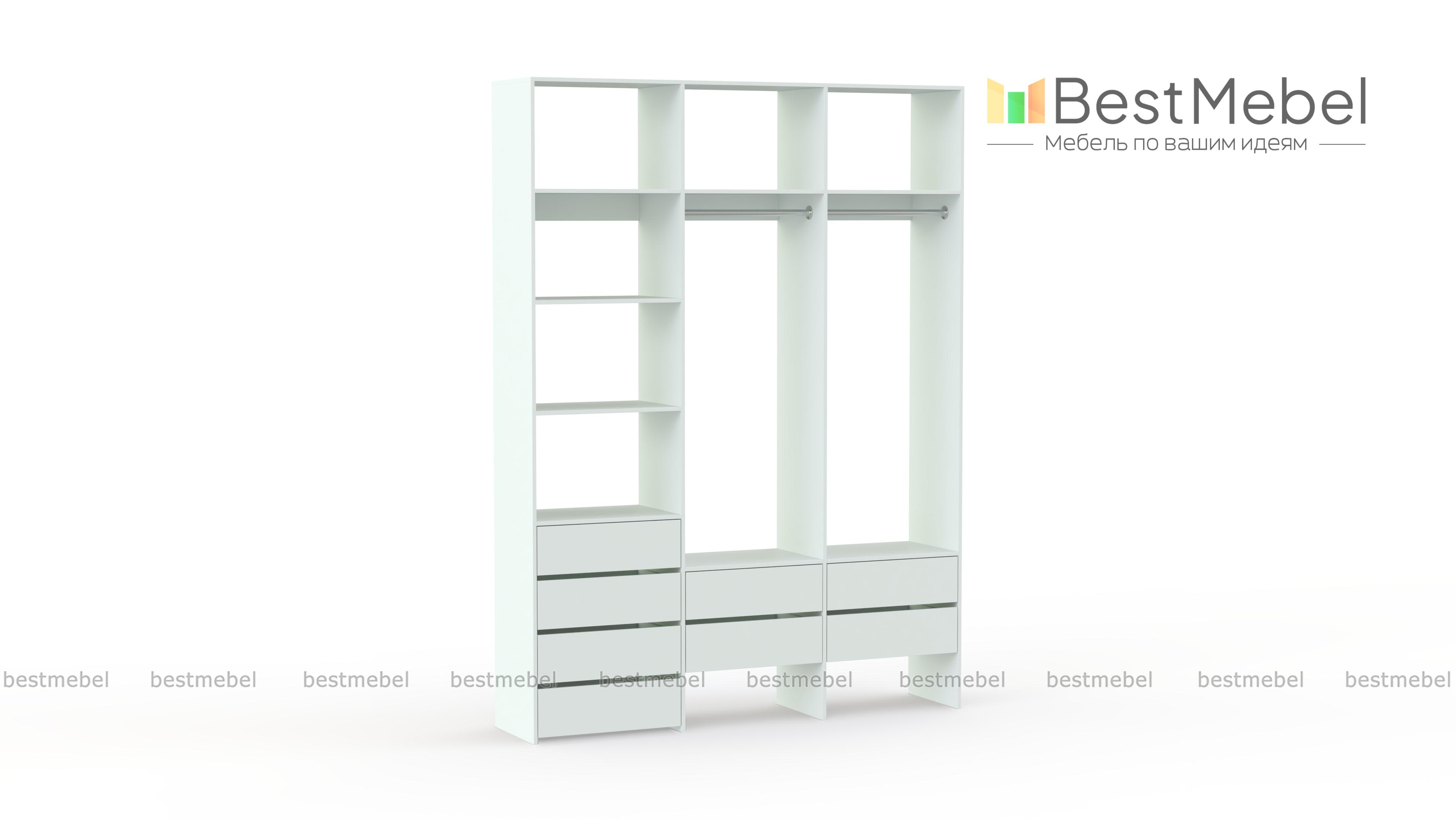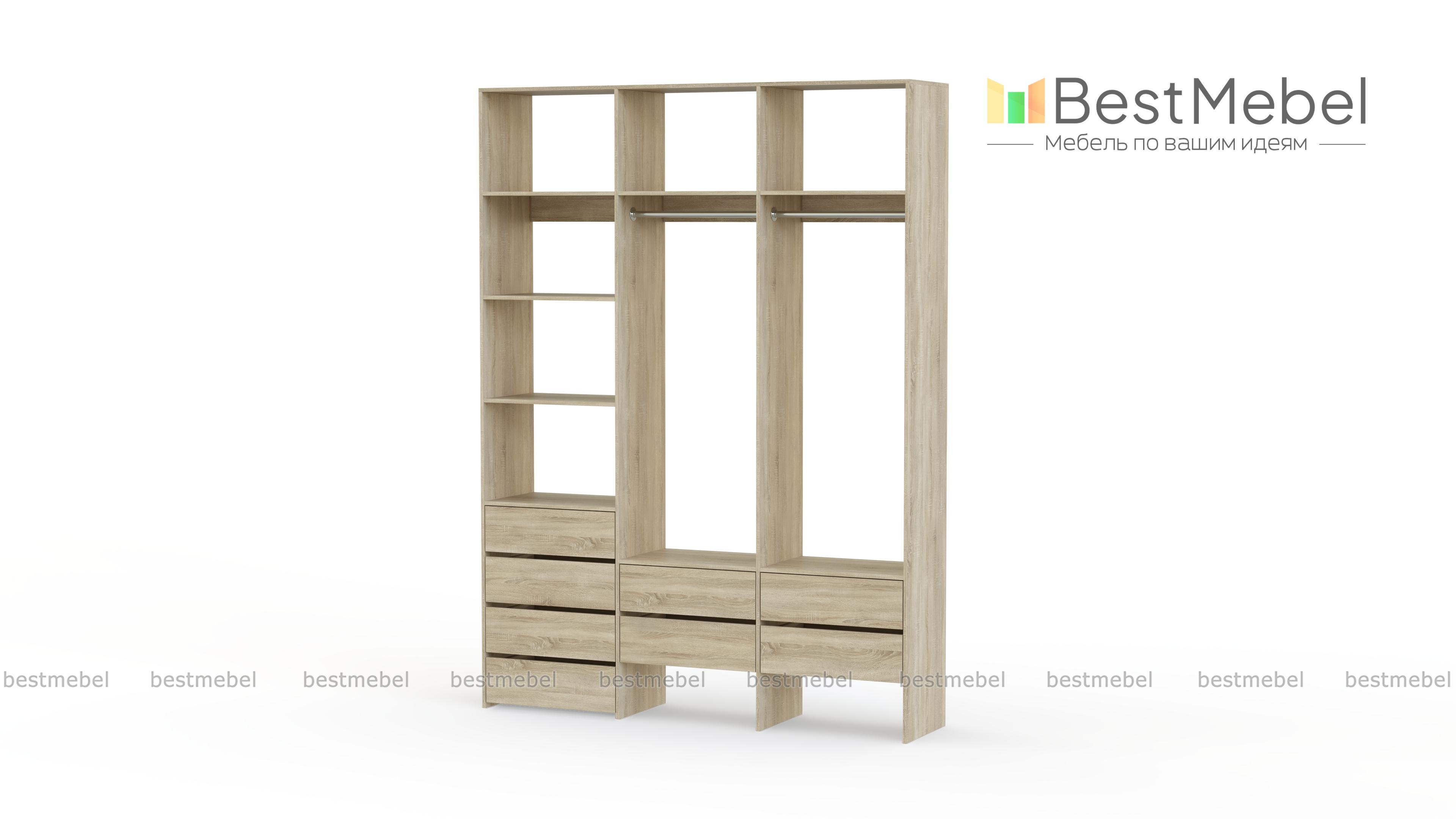 Стеллаж для одежды Мирта 54 BMS станет частью современной прихожей или гардеробной. Конструкция из ламинированной плиты имеет универсальный дизайн, надежна и функциональна. Система хранения трехсекционного стеллажа включает в себя две платяные штанги, ящики для белья и мелочей, ряд верхних и боковых полок, а пространство под ящиками можно использовать для размещения обуви. Купить стеллаж для одежды Мирта 54 BMS приглашаем в наш интернет-магазин, подобрав нужные размеры и цвет по каталогу.