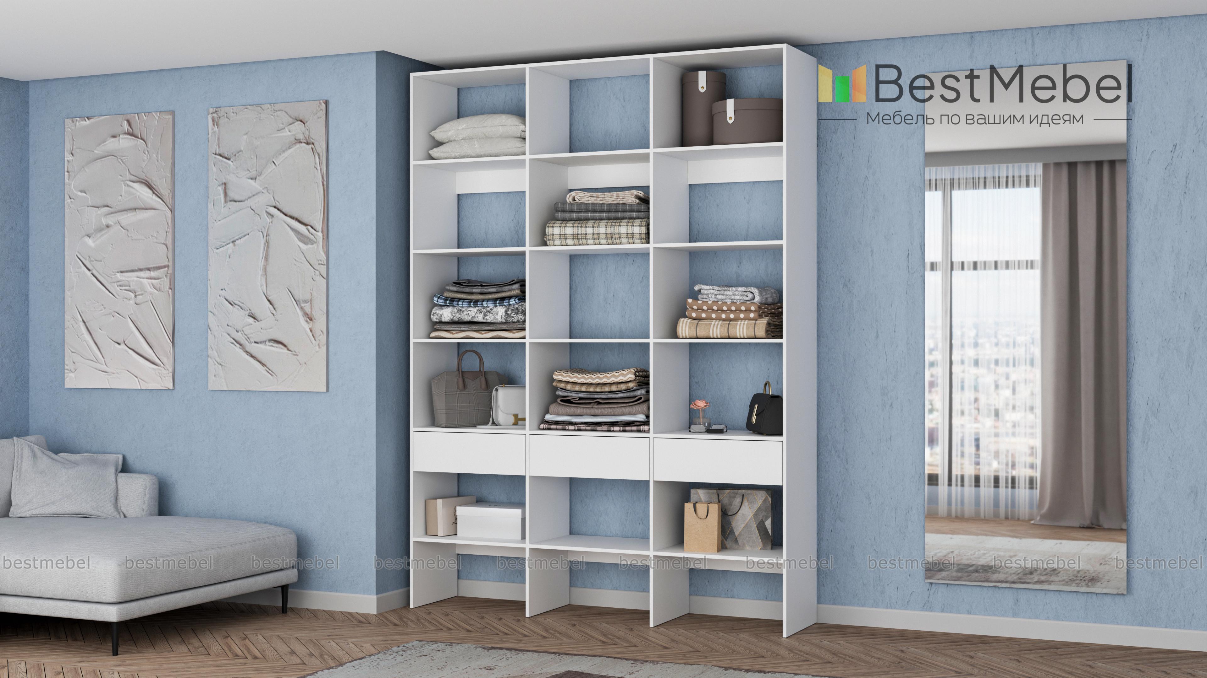 Стеллаж для одежды Мирта 56 BMS прекрасно подойдет для хранения сложенной одежды, домашнего текстиля, коробок с вещами и мелкого трикотажа. Пространство трехсекционного стеллажа разделено просторными полками, а в нижней части дополнено выдвижными ящиками. Благодаря изготовлению из ламинированной плиты конструкция отличается прочностью, поверхности надолго сохраняют привлекательный внешний вид. Купить стеллаж для одежды Мирта 56 BMS вы сможете на сайте нашего интернет-магазина, подобрав цвет и размеры.