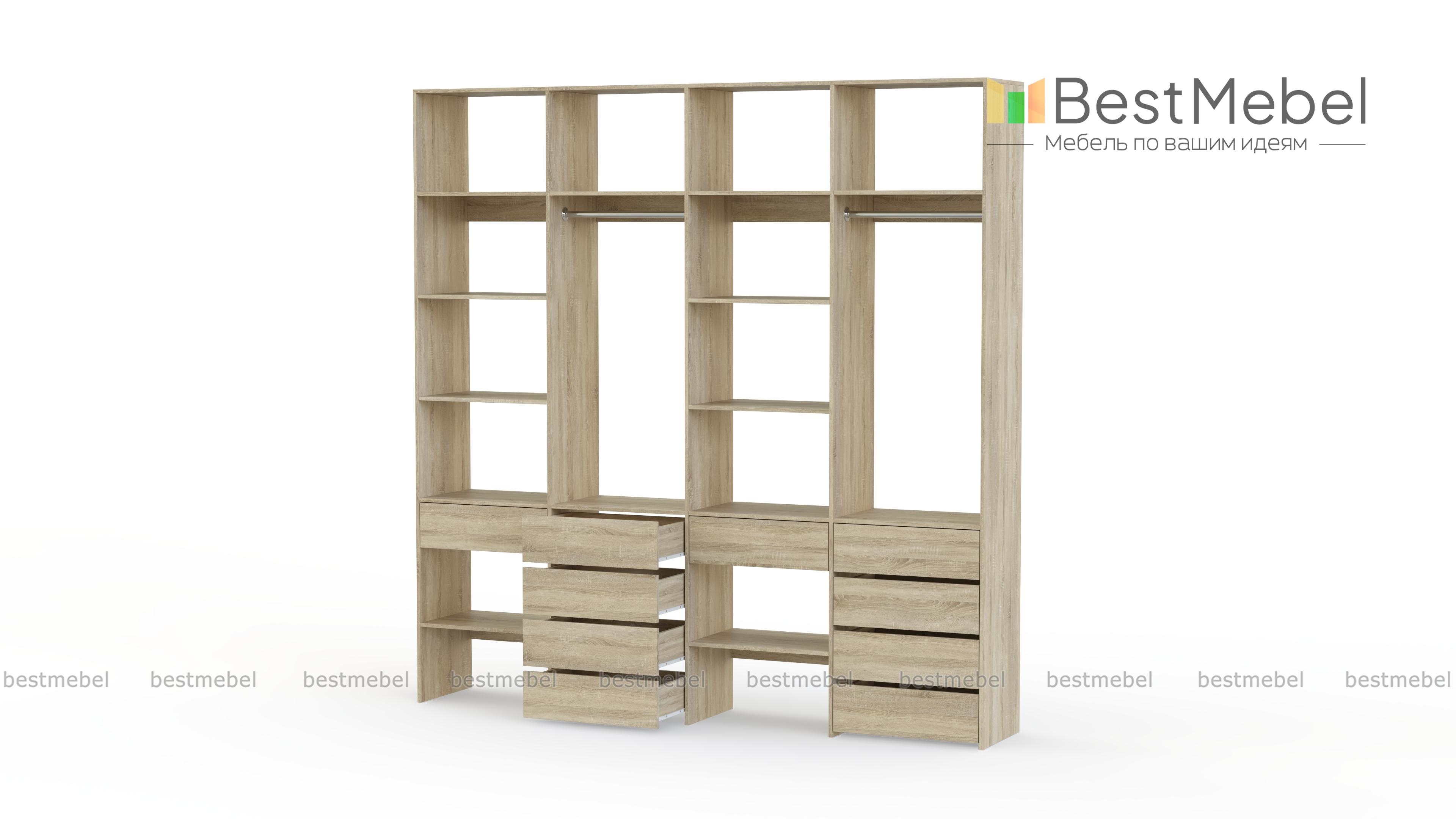 Стеллаж для одежды Мирта 61 BMS обеспечит удобное хранение вашим вещам, помогая поддерживать порядок в доме. В конструкции вместительного четырехсекционного стеллажа чередуются открытые полки и штанги, а выдвижные ящики выполняют функцию комода. За ламинированными поверхностями легко ухаживать и стеллаж надолго сохранит свой эстетичный вид. Купить стеллаж для одежды Мирта 61 BMS в необходимом размере и подходящем вашему интерьеру оттенке вы сможете в нашем интернет-магазине.