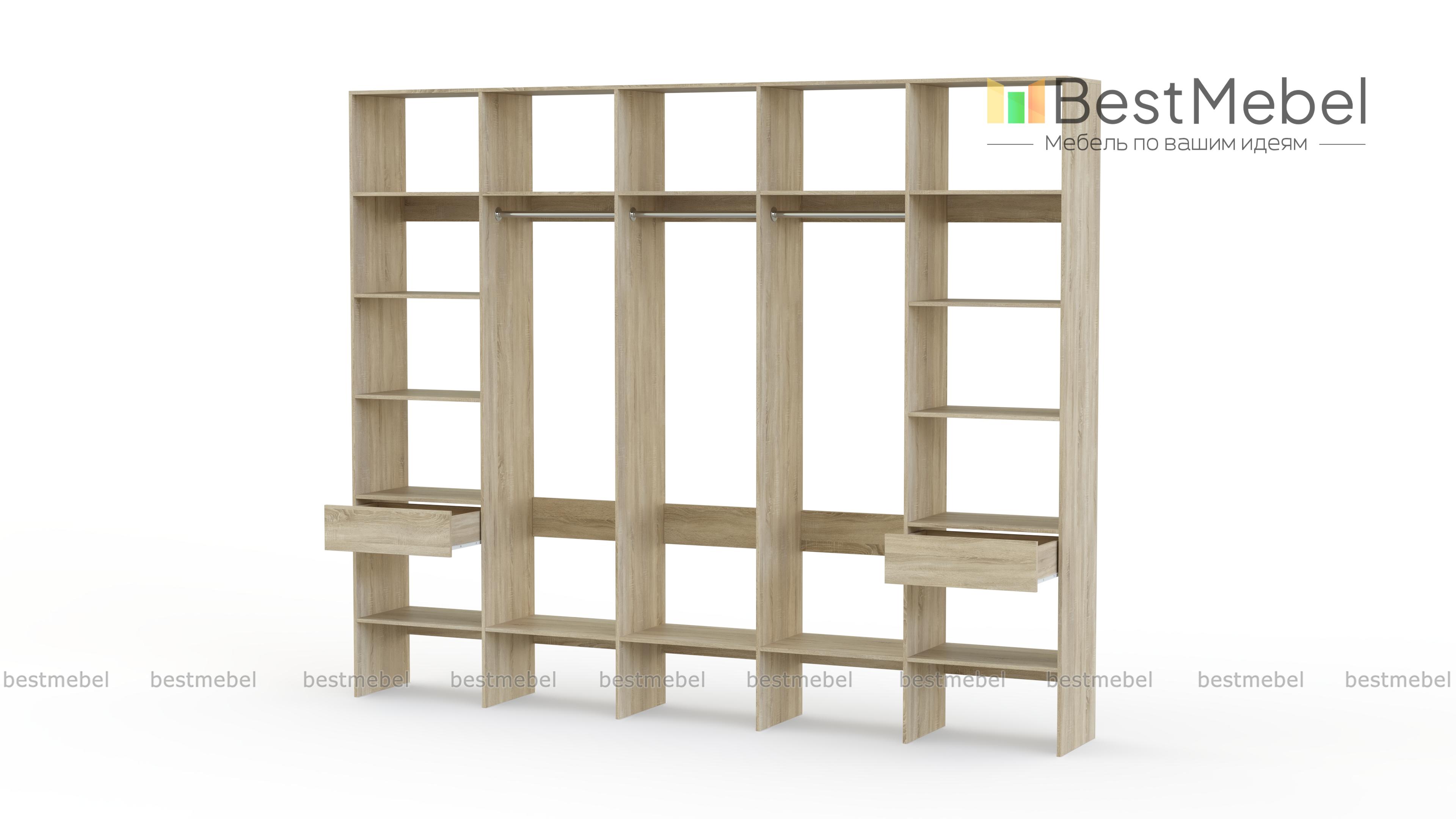 Стеллаж для одежды Мирта 69 BMS — это полноценная система хранения для просторной гардеробной. Три штанги в центре, полки по периметру и два выдвижных отделения обеспечивают быстрый доступ ко всем вещам: от сезонной одежды до мелких аксессуаров и средств ухода. Благодаря универсальному дизайну стеллаж гармонично вписывается в разные по стилю интерьеры. Купить стеллаж для одежды Мирта 69 BMS с индивидуальным подбором цвета и размеров вы сможете на сайте нашего интернет-магазина.