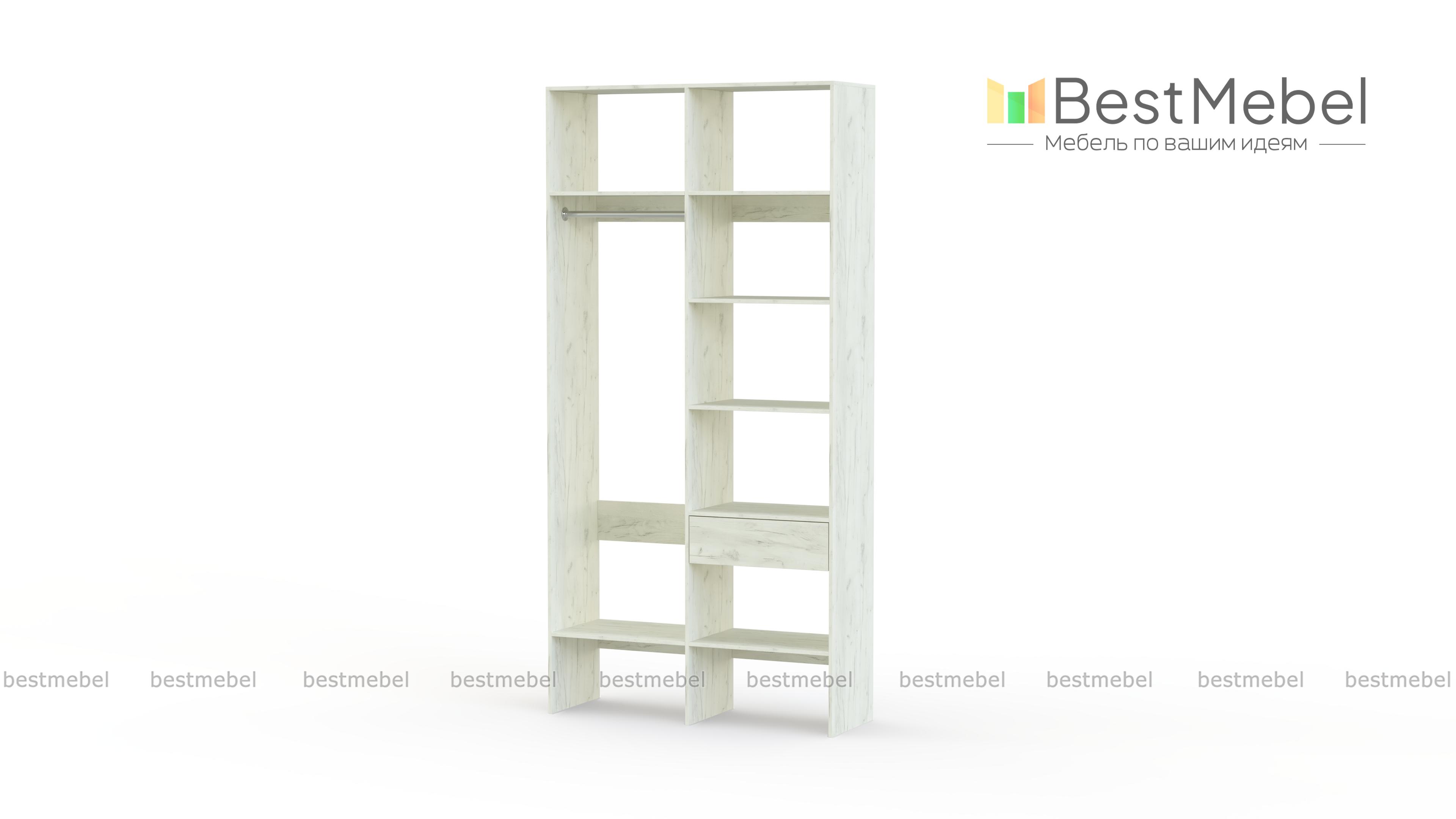Стеллаж для одежды Мирта 7 BMS – это стандартное платяное отделение со штангой и секция для белья, укомплектованная полками и ящиком. Компактный и легкий, открытый стеллаж заменит шкаф в небольшой комнате или разместится в гардеробной. Современный функциональный дизайн сочетается с базовым светлым оттенком, делая модель по-настоящему универсальной. Купить стеллаж для одежды Мирта 7 BMS вы всегда сможете в нашем интернет-магазине, по желанию изменив цвет и размеры.