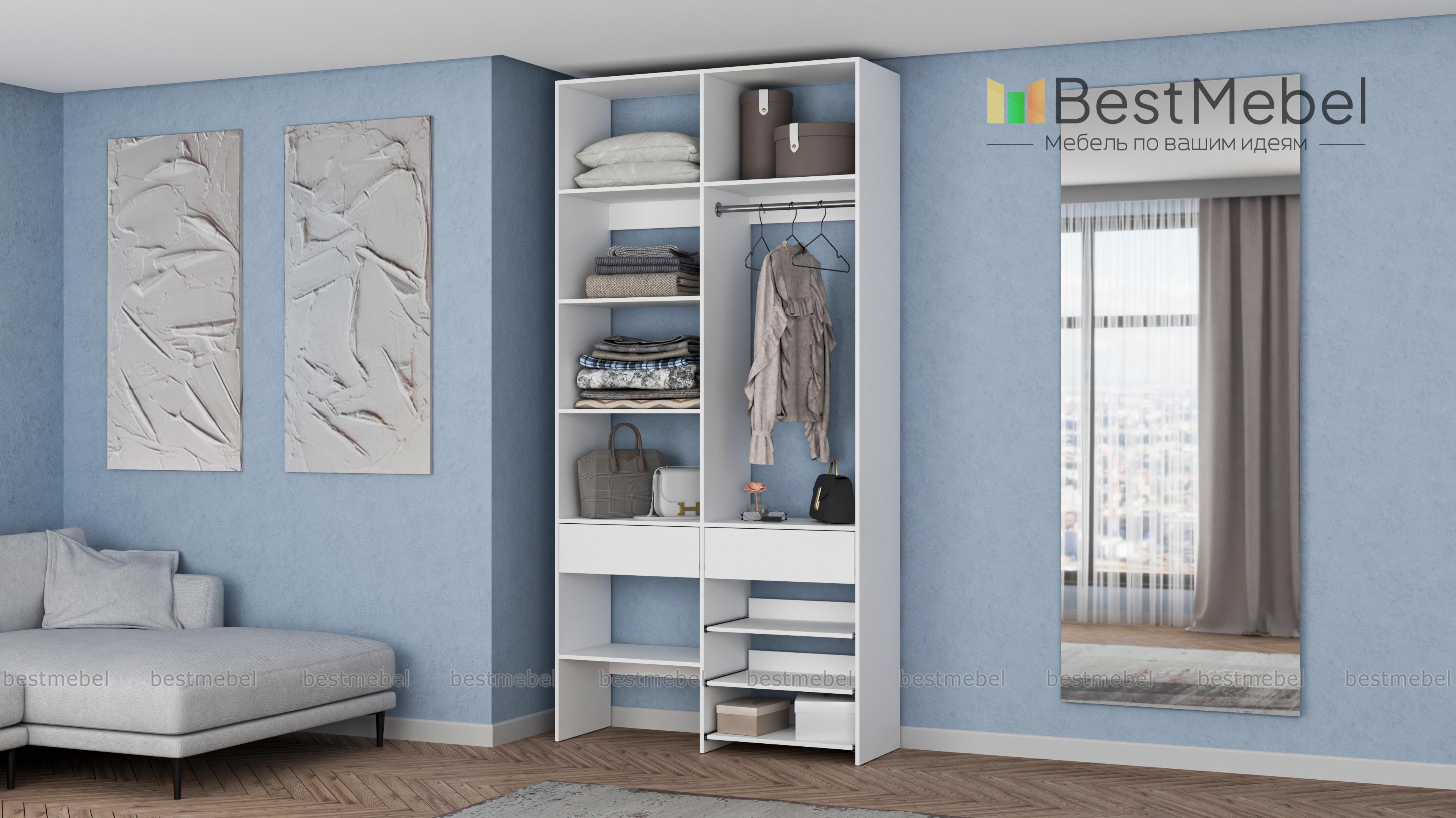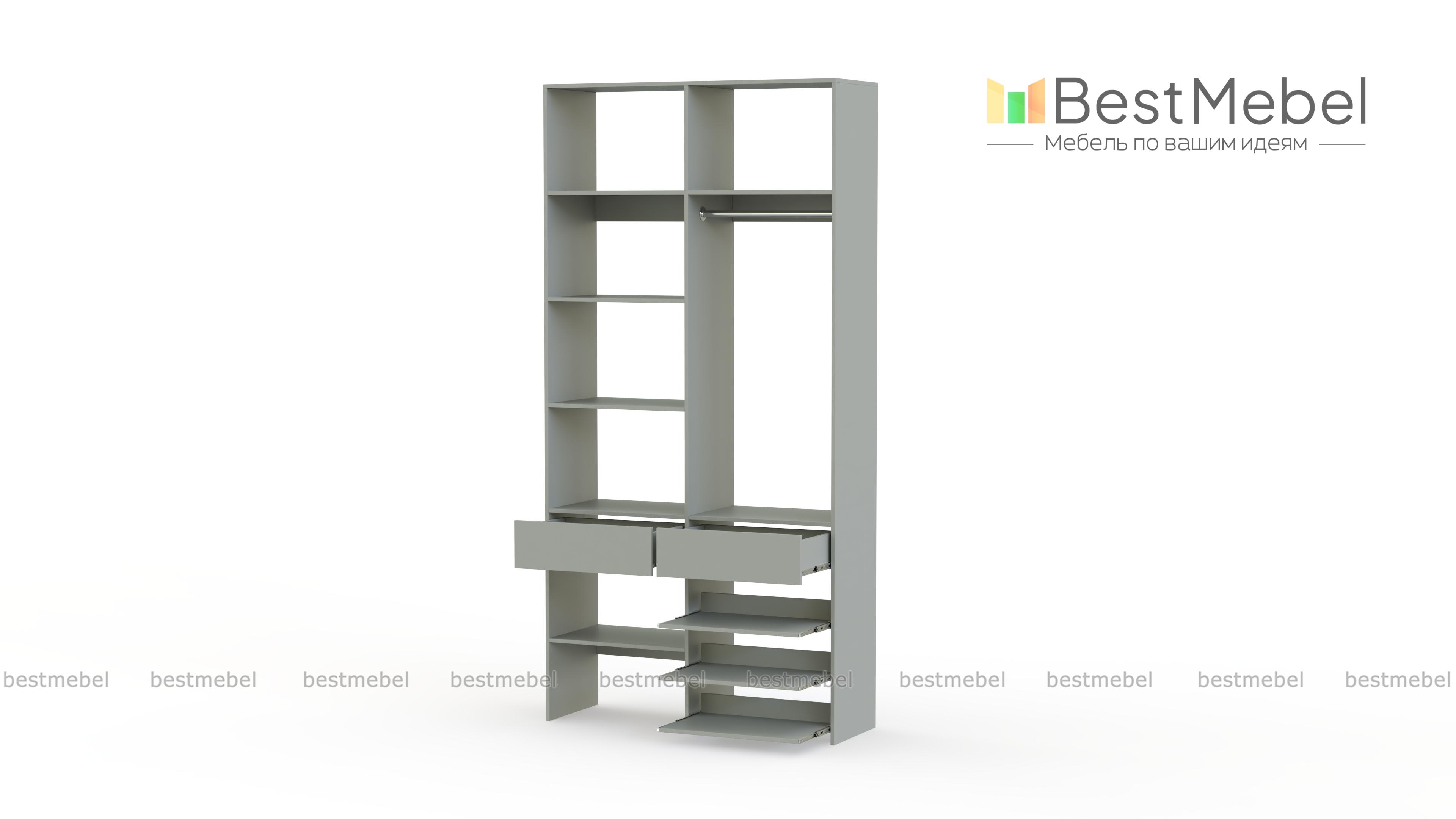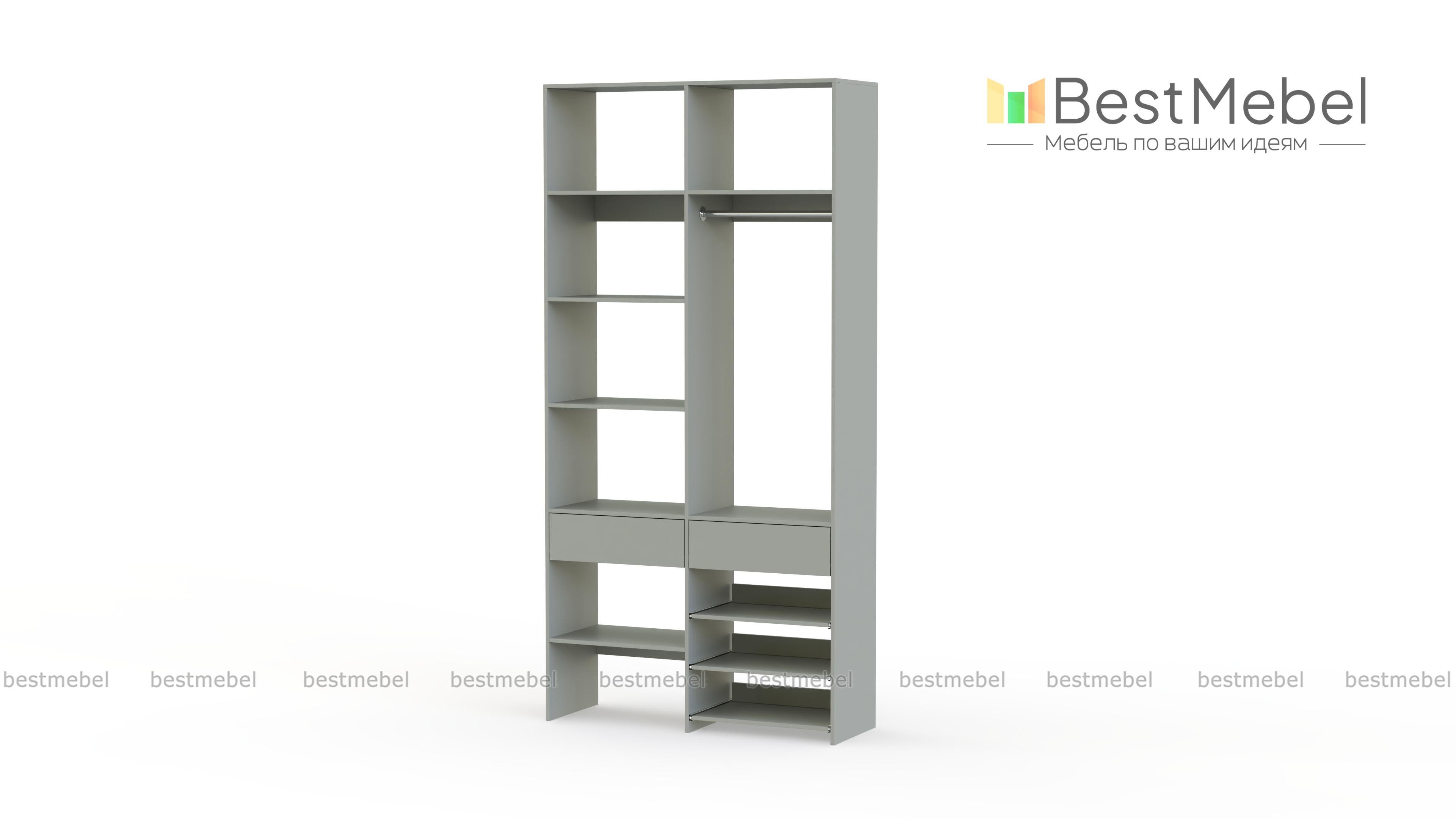 Стеллаж для одежды Мирта 81 BMS — компактная и вместительная система хранения в прихожую, спальню, гардеробную. Одежная штанга, два ящика под аксессуары и мелкий трикотаж, ряд бельевых полок и выдвижных панелей имеют эргономичное размещение. Благодаря простой форме и современному функциональному дизайну стеллаж легко комбинируется с другими предметами обстановки. Купить стеллаж для одежды Мирта 81 BMS приглашаем в наш интернет-магазин, подобрав цвет и размеры.