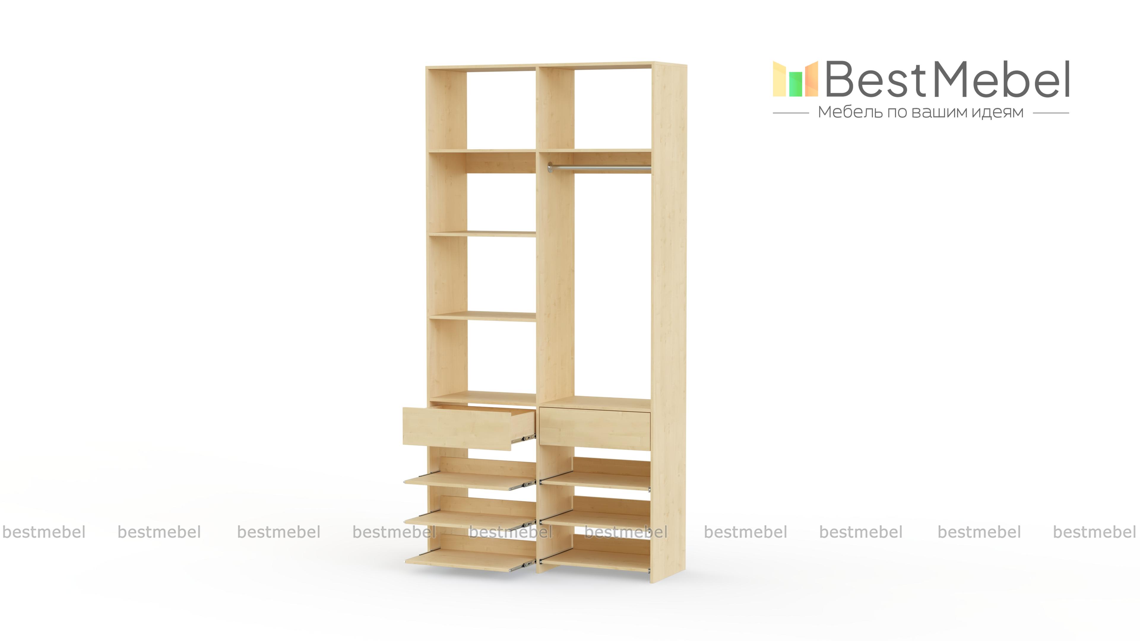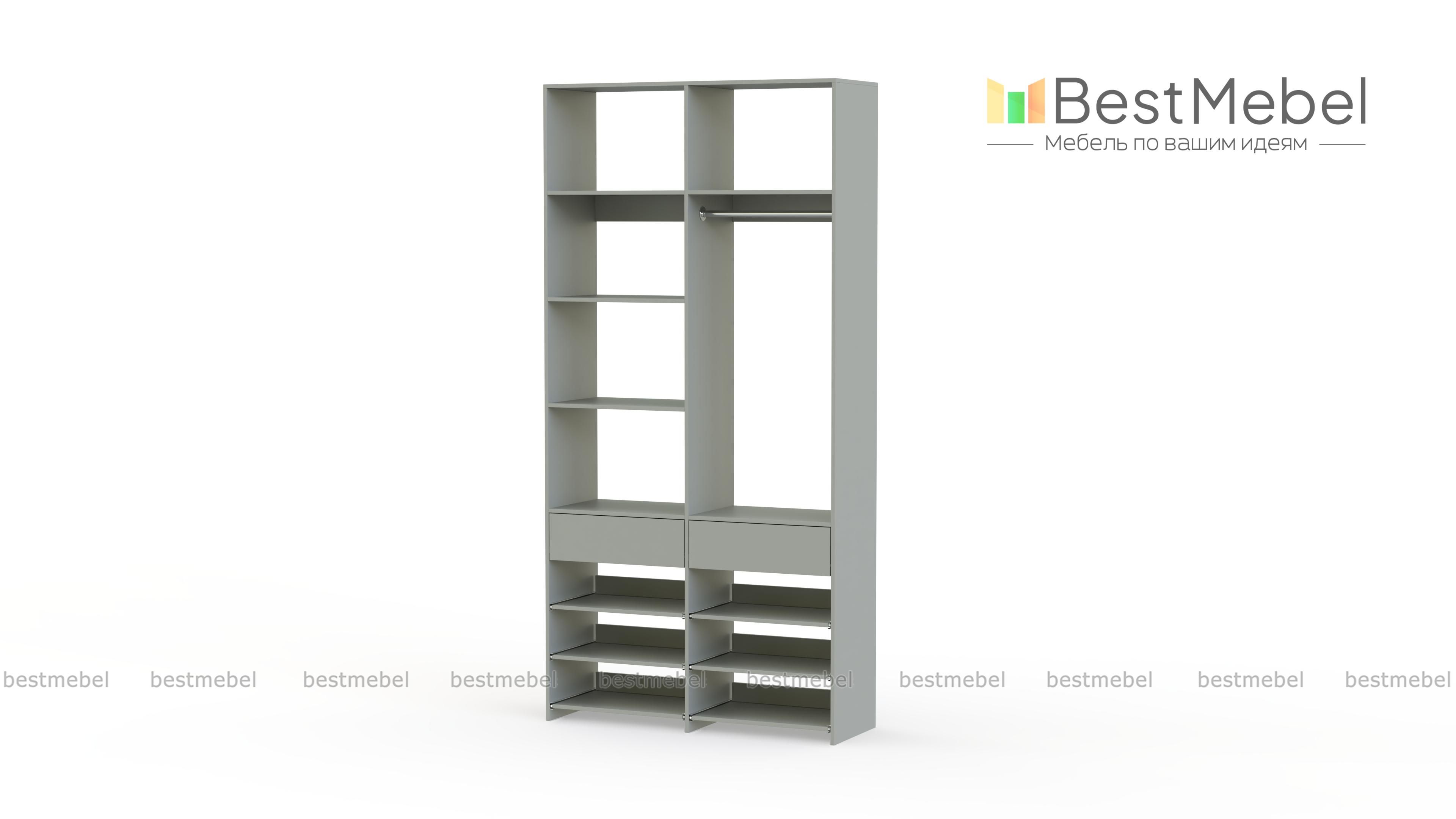 Стеллаж для одежды Мирта 82 BMS эффективно использует ограниченную площадь маленькой прихожей или гардеробной комнаты. В конфигурации со штангой, двумя ящиками, выдвижными и стационарными полками есть место для одежды, обуви и мелких аксессуаров. Ламинированное покрытие стеллажа устойчиво к влаге и появлению царапин, легко моется и эстетично выглядит. Купить стеллаж для одежды Мирта 82 BMS в оттенках нашего каталога и любом удобном размере вы сможете на сайте интернет-магазина.