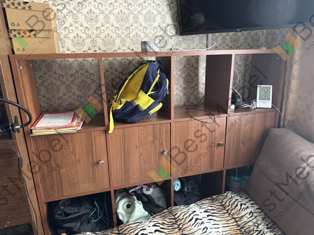 Стеллаж идеально встал в ноги дивана, позволив максимально использовать пространство в очень маленькой комнате. Да, он похож на камеру хранения, но тем он и прекрасен))) В открытые полки прекрасно протянулись провода и поместилось многопроводная зарядная станция. Но у меня в очередной раз вопрос: что движет вами, когда для крепления ручек вы поставляете такие короткие болты? Я заказывала у вас 5 изделий с разными ручками и НИ ОДНУ не удалось прикрутить штатными болтами….