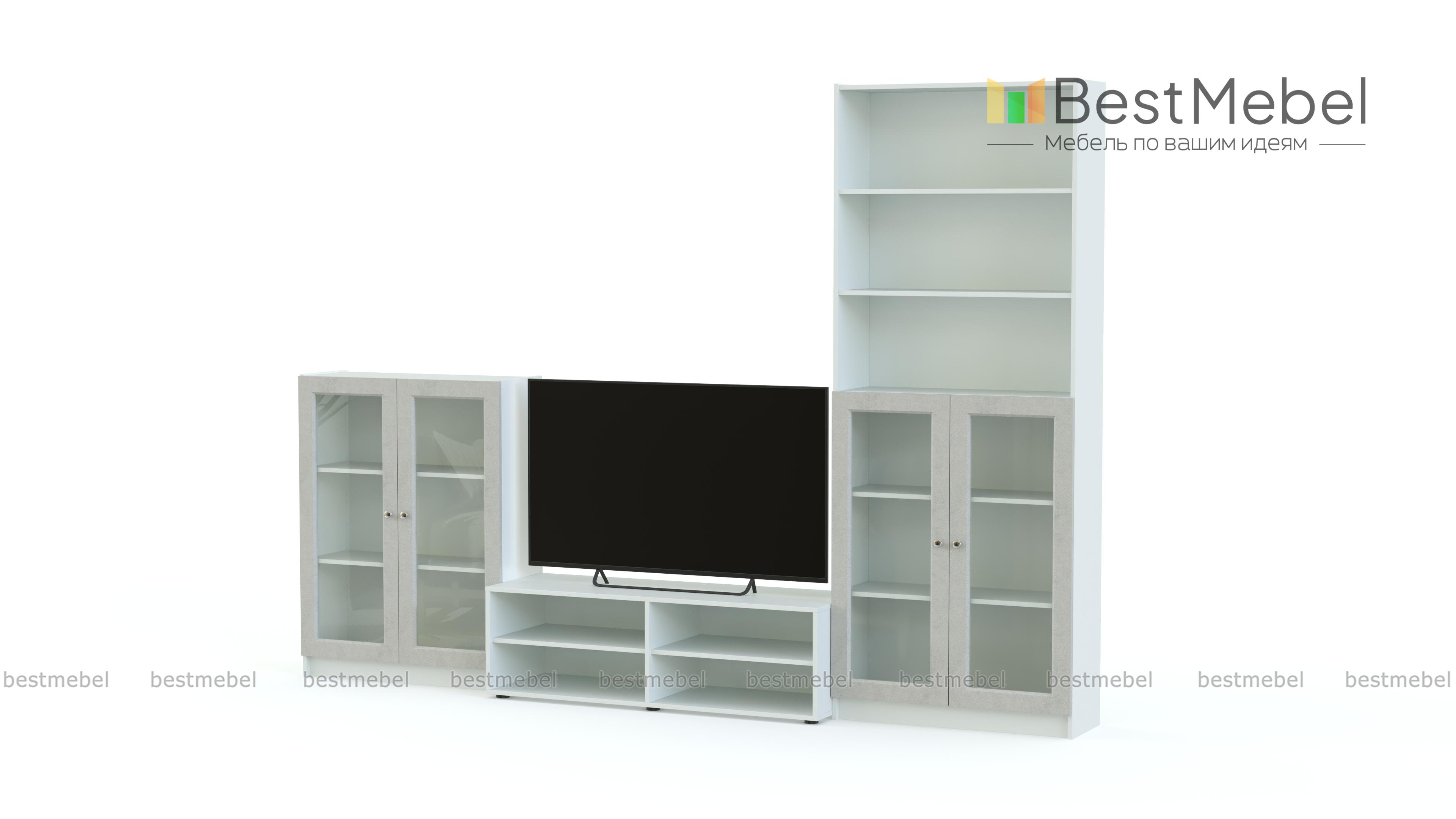 Стенка Билли Бесто Billy Besta 1 позволит вам не только оформить телезону, но и продемонстрировать любимые вещи. Домашняя библиотека, коллекция, красивый сервиз и памятные мелочи будут на виду благодаря открытым и застекленным полкам. Модульная стенка для гостиной в современной стилистике включает в себя тумбу под ТВ, распашную витрину и комбинированный с витриной стеллаж. Купить стенку Билли Бесто Billy Besta 1 вы сможете в нашем интернет-магазине с выбором цвета по каталогу. Выбирайте мебель в стиле IKEA (ИКЕА) от производителя BestMebelShop!