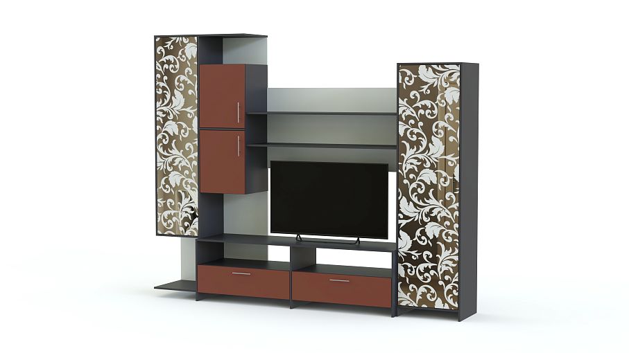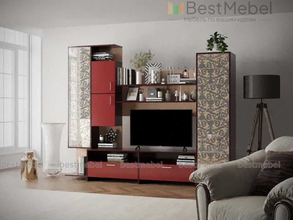 Стенка Гала МДФ BMS – это компактные размеры и яркий современный дизайн. Модульная конструкция станет отличным выбором для малогабаритных гостиных, красиво оформит зону домашнего кинотеатра, разместит дополнительную аппаратуру, книги и множество мелочей. В комплекте тумба под ТВ, пенал, открытые полки и навесная секция с закрытыми отделениями и нишей. Особенную оригинальность стенке придает сочетание матовых поверхностей с цветными матовыми фасадами и зеркалами с пескоструйным рисунком. Купить стенку Гала МДФ BMS по лучшей цене приглашаем к нам в интернет-магазин.