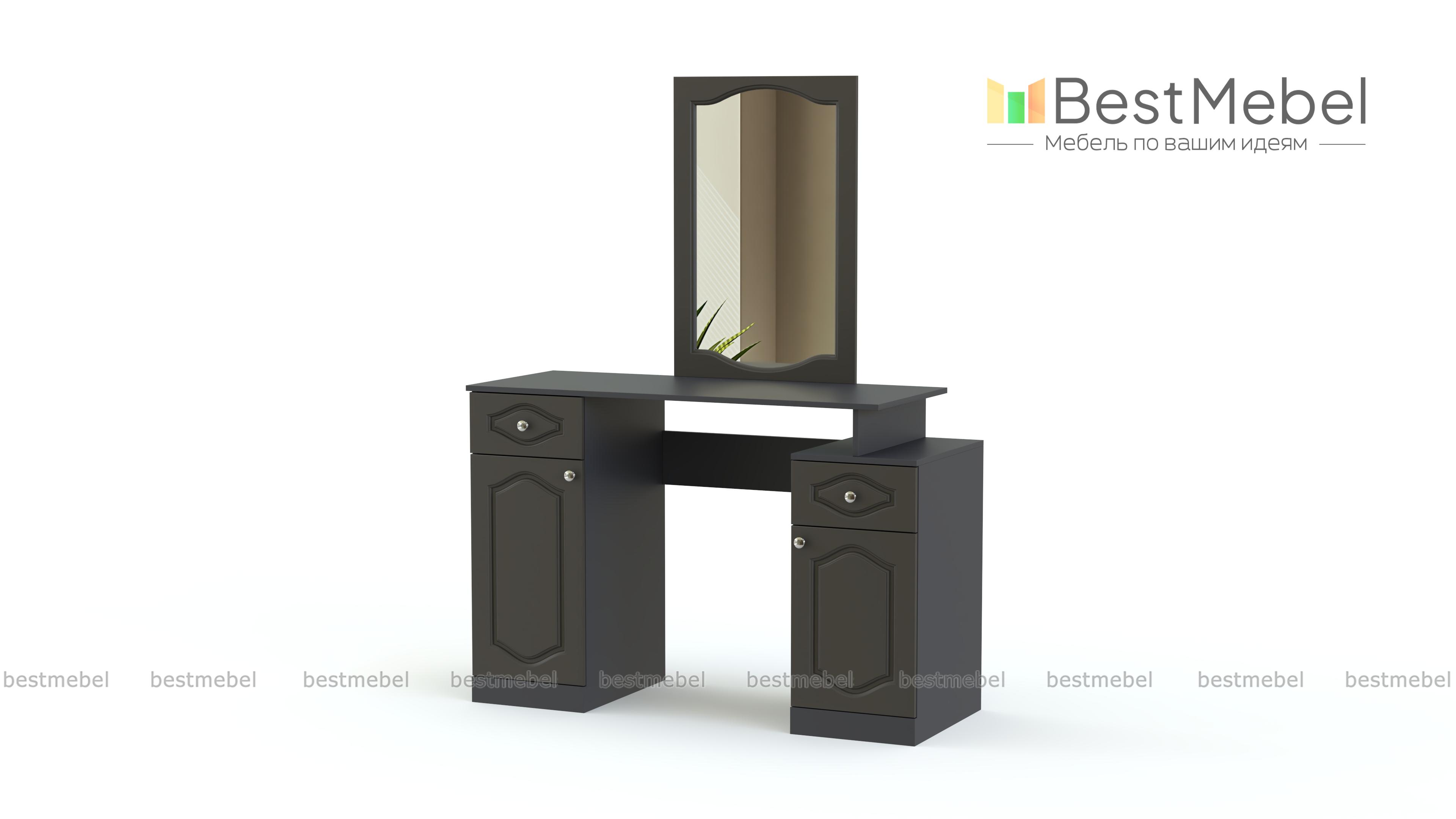 Стол макияжный Арина-2 BMS может использоваться как самостоятельный предмет интерьера или в комплекте с другими модулями классической серии для спальни. Двухтумбовый столик оборудован просторной столешницей, зеркалом в раме, выдвижными ящиками и распашными отделениями с полками для хранения под рукой уходовых средств, украшений и аксессуаров. Выполненная в универсальных белых тонах, модель декорирована по фасаду фрезеровкой. Купить стол макияжный Арина-2 BMS для комфортного ухода за собой приглашаем в наш интернет-магазин.