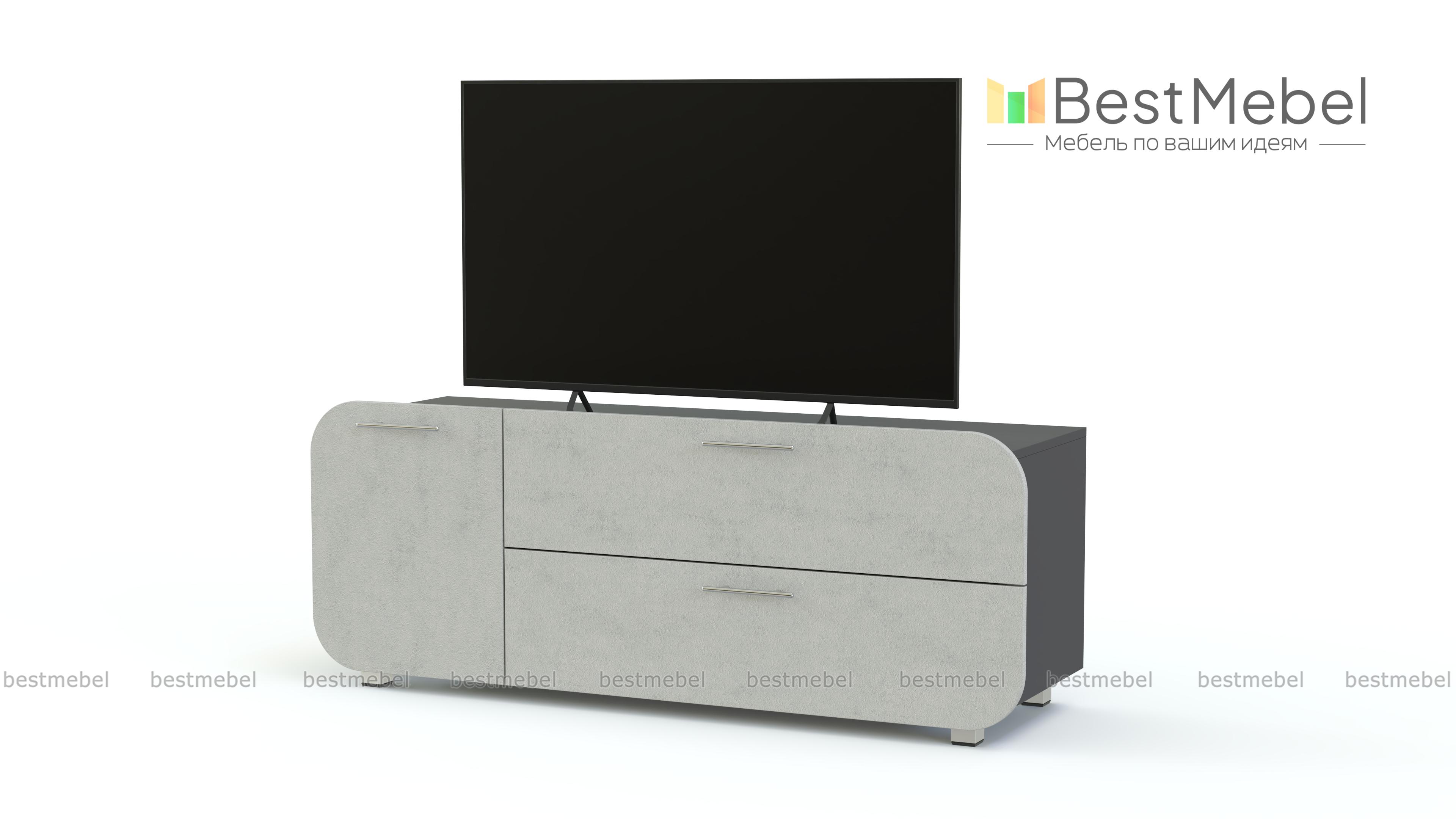 Тумба под ТВ Модерно 5.1 BMS поможет оборудовать гостиную или спальню в стиле минимализм и хай-тэк. Современная модель со скругленными матовыми фасадами привлекает внимание не только оригинальным дизайном, но и функциональностью. Для удобного размещения техники, интерьерных украшений и разнообразных мелочей тумба оборудована просторной столешницей, распашным отделением и выдвижными ящиками. Купить тумбу под ТВ Модерно 5.1 BMS вы сможете в нашем интернет-магазине, подобрав нужные параметры.