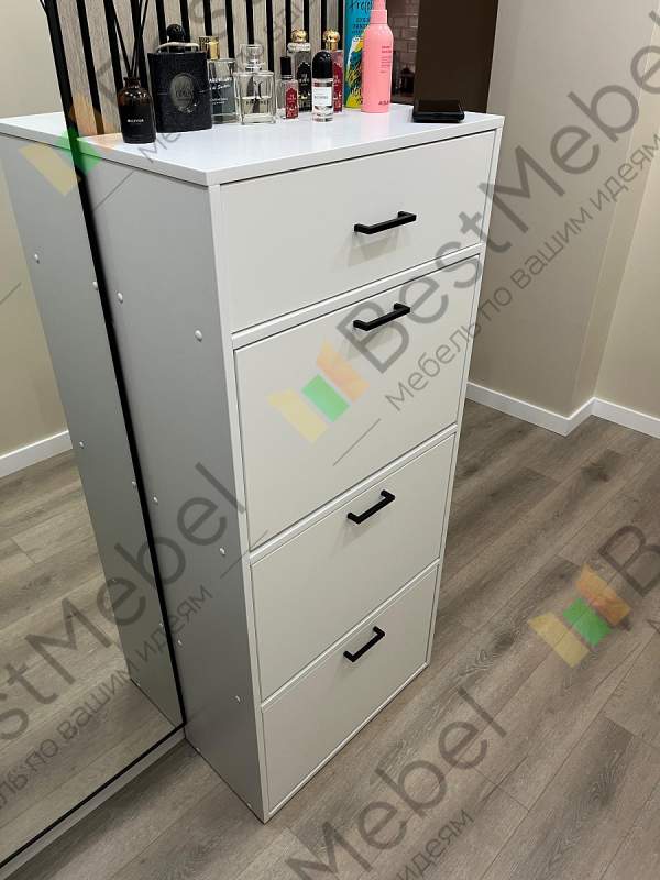 Тумба для обуви Вайт 8 BMS станет элегантным дополнением современной прихожей и обеспечит экономию пространства. Компактная и вместительная благодаря высоте модель оборудована тремя откидными отделениями под обувь и выдвижным ящичком для уходовых средств и прочих мелочей в верхней части. Практичный корпус в светлых тонах дополнен эффектным фасадом в сером глянце, который визуально делает помещение просторнее и светлее. Купить тумбу для обуви Вайт 8 BMS вы сможете в нашем интернет-магазине.