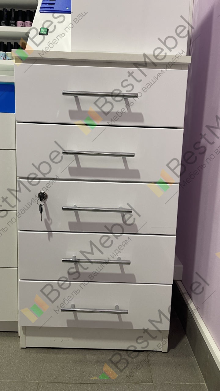 Тумба Маникюрная с замком и ящиками BMS станет отличным выбором для меблировки салонов красоты. Модель компактна и выполнена в универсальном белом цвете, который гармонично впишется в большинство современных интерьеров. Для размещения рабочих материалов тумба оборудована пятью выдвижными ящиками с практичными ручками-рейлингами, один из которых закрывается на ключ и подходит для хранения личных вещей. Купить тумбу Маникюрная с замком и ящиками BMS приглашаем в наш интернет-магазин.