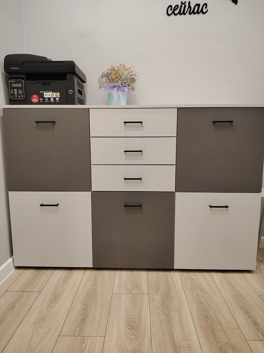 Комод понравился, нужно было большой и вместительный в коридор, единственный минус направляющие роликовые, прошлый век, я думала на роликах уже не делают, а так в целом все хорошо, заказывала в другом цвете, собрали быстро, фурнитуры всей хватило, даже с запасом. Спасибо за быструю работу и доставку, всем буду советовать Бест Мебель, удобно что можно индивидуально по размерам и цветам заказать и выбор мебели очень большой