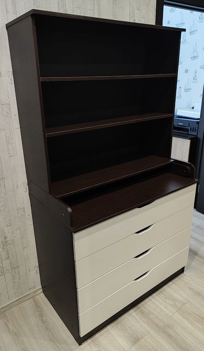 Заказали комод по своим размерам. Получили роскошный большой и удобный вариант. + подобрали в цвет имеющейся мебели. По качеству немного снизил оценку:- несколько отверстий под евровинт ушли в сторону. Не критично, но есть такой момент.- сильно ухудшилось качество шариковых направляющих.