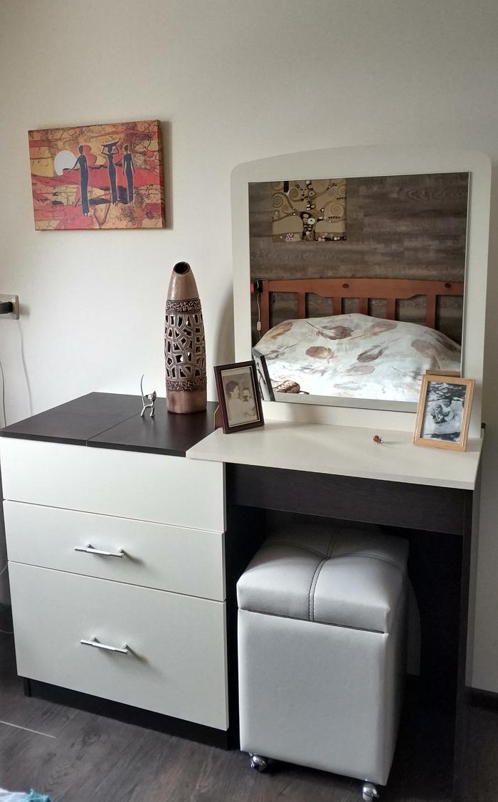 Очень удобно, что можно выбирать размер и цвет. По цвету шкаф и комод идеально подошли к интерьеру спальни. Качество вполне соответствует цене. Все собралось без проблем, собирали сами по приложенной схеме. Заказ оформили оперативно, изготовили быстро, доставили вовремя. Спасибо! (заказ 00000296901)