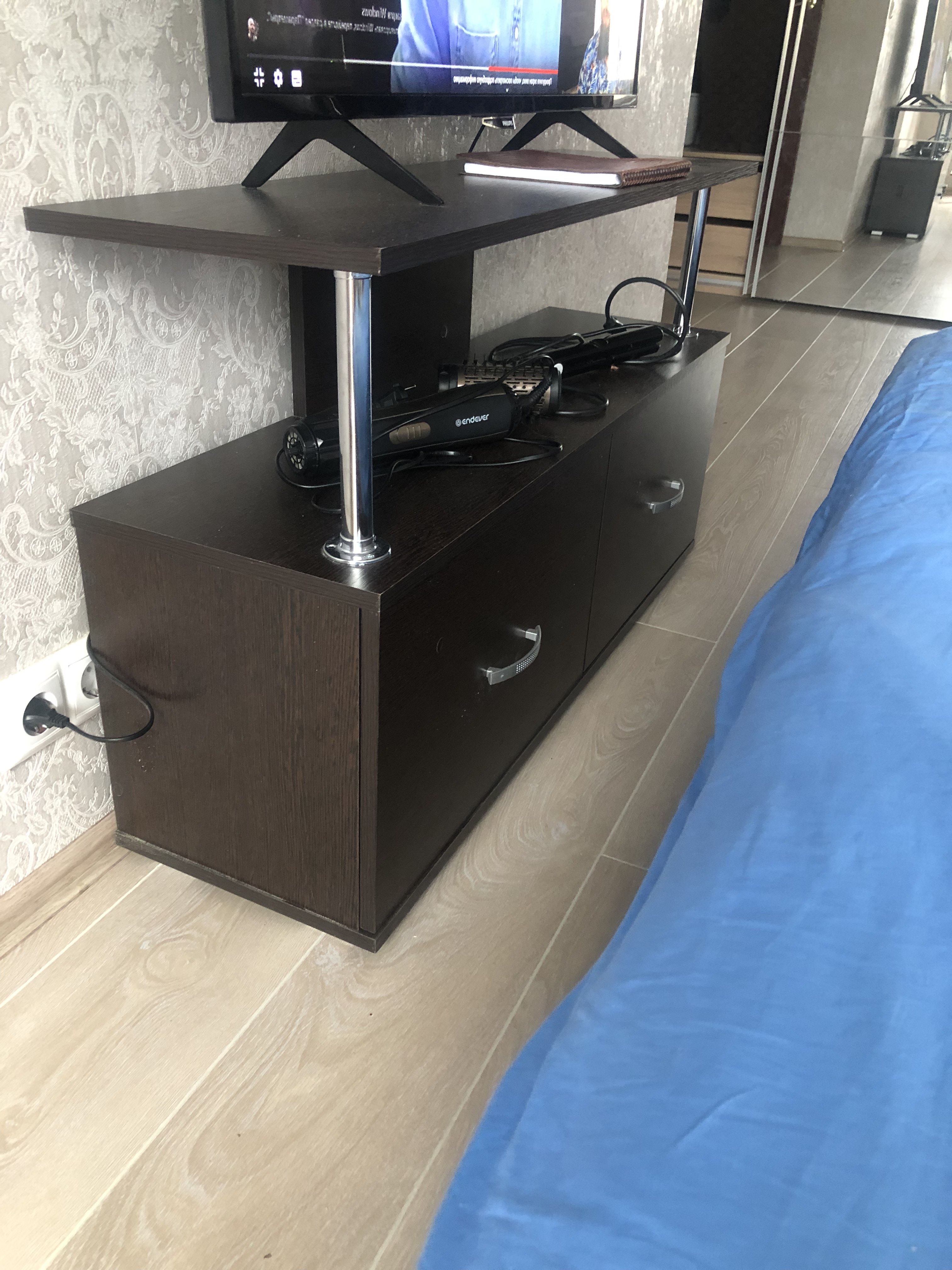Отличная тумба под телевизор.Плюсы: стильная, простая в использовании, адекватная цена, была возможность подобрать габариты.Минусы: за данную цену не обнаружено