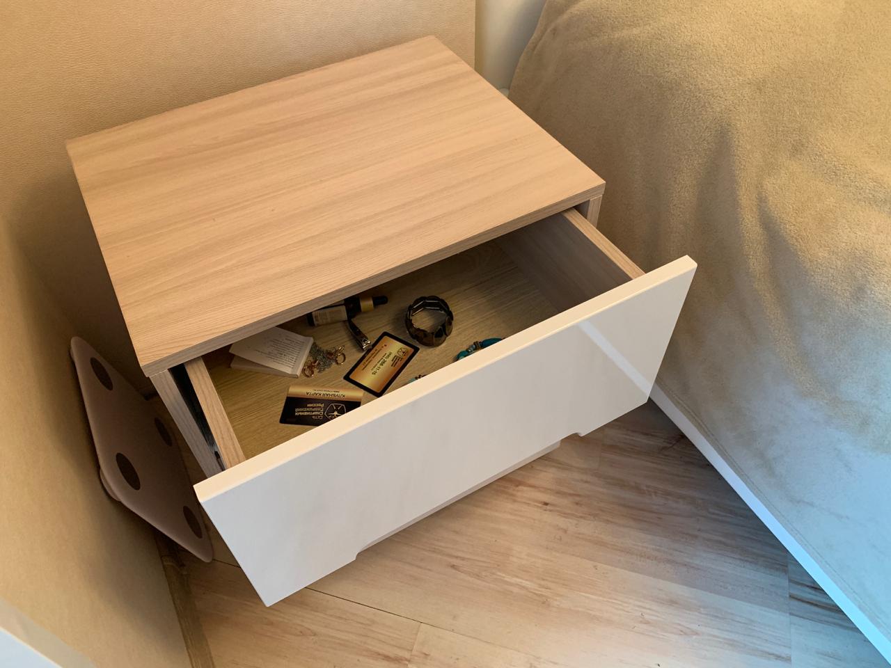 Заказали 2 тумбы прикроватные в спальню 26.05.2019. Номера заказов: 00000238893 и 00000238894. После 3 месяцев использования очень довольны! Цвет идеально подошел к нашему интерьеру, качество отличное. Доставили вовремя и без всяких косяков (типа сколов и прочего). Собрал муж сам по инструкции, вопросов не возникло. Покупали, кстати, со скидкой. Спасибо за возможность приобрести качественную мебель по приятной цене. Будем думать, что заказать еще