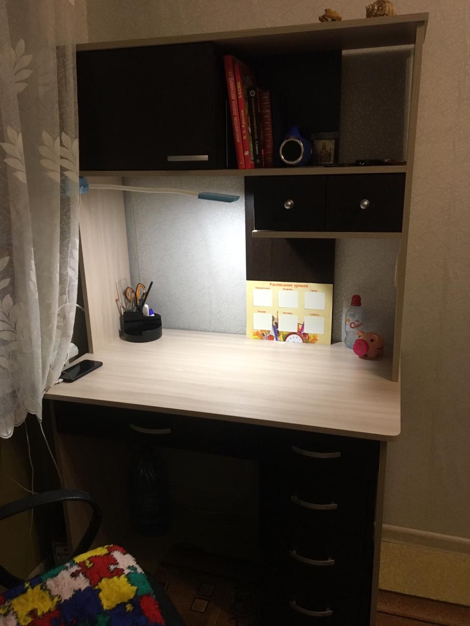 Всем доброго дня! Не в первый раз заказываю мебель  в данном магазине. Нравится и цена и качество.  Для меня важно, что можно менять цвет мебели,  менять размеры и еще- бесплатная доставка!!  Данный стол заказала своему первокласснику, по своим размерам и в цвете венге. Видела его на других сайтах, цена там на порядок выше. Стол компактный и вместительный, сын доволен. Ни секунды не сомневалась, заказала, изготовили и доставили в оговоренные сроки.  Ждет своего первоклассника)))